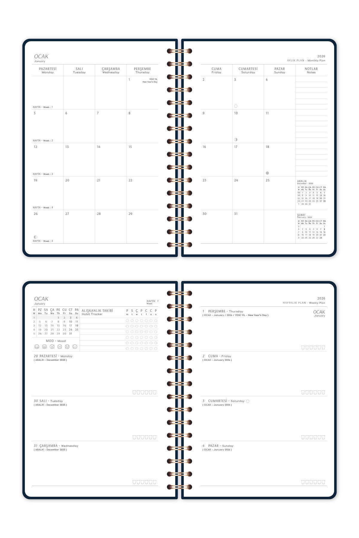 2026 Ajanda A5 Spiralli Haftalık Planlayıcı – 12 Aylık