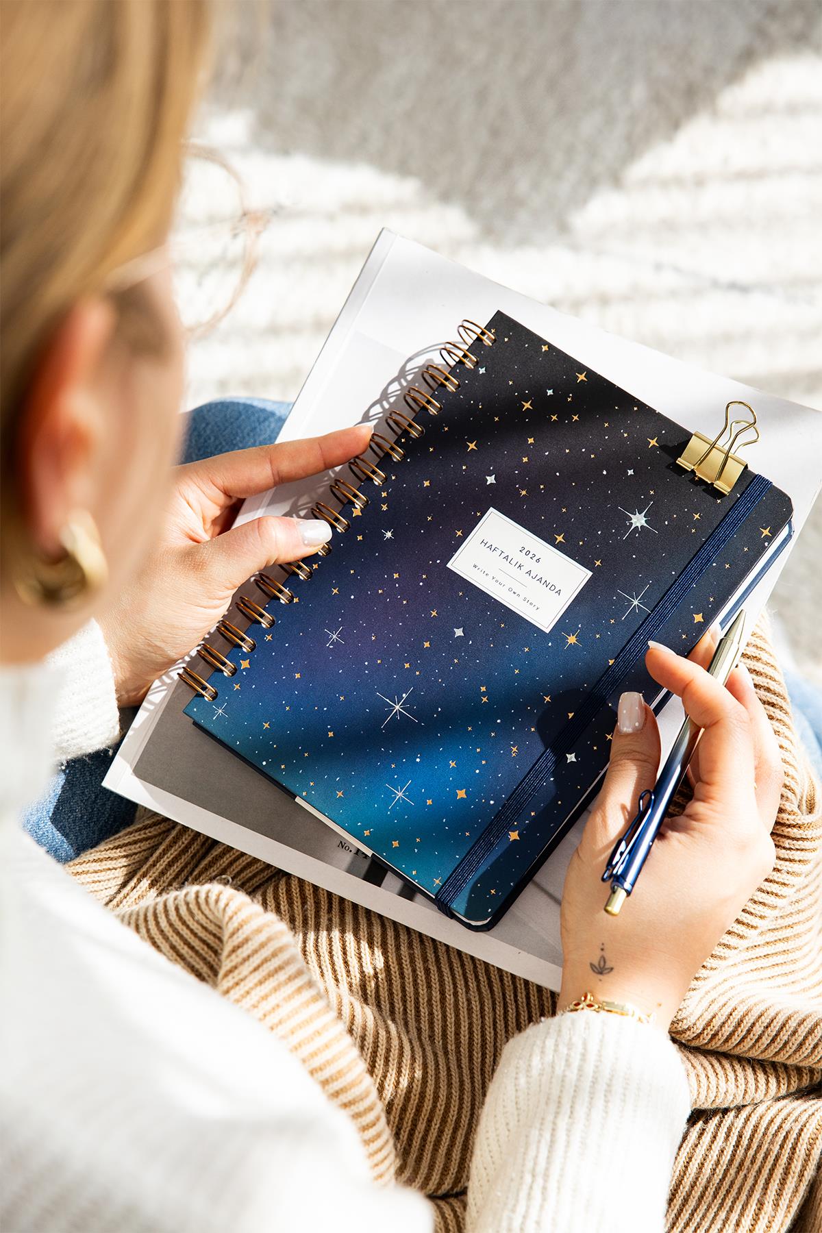 Ajandanın haftalık plan sayfaları, haftanın günlerini ve önceliklerini görmenizi sağlar. Görevlerinizi, toplantılarınızı veya kişisel notlarınızı düzenli bir biçimde kaydedebilir; hafta boyunca yapılacakları etkili şekilde takip edebilirsiniz.