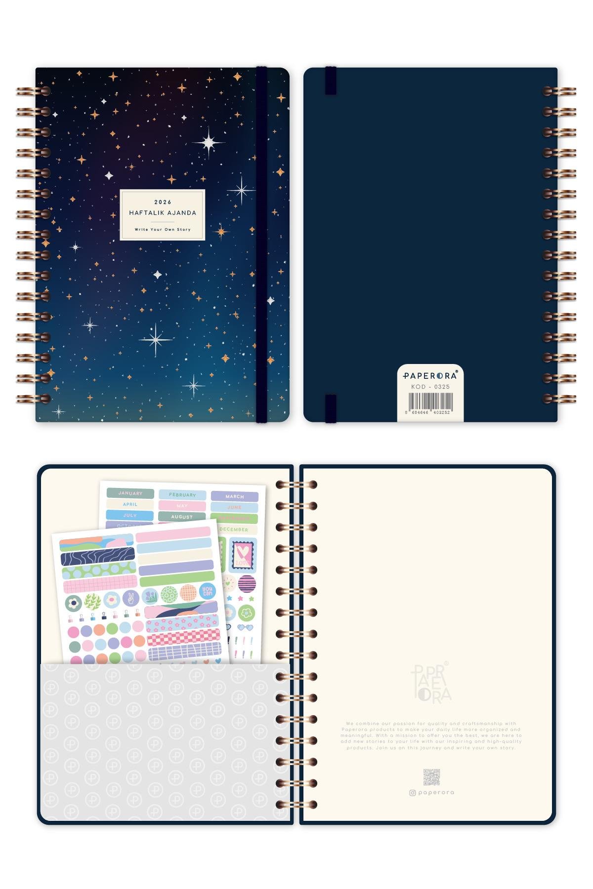 2026 A5 Spiralli Haftalık Ajanda 12 Aylık - Galaksi