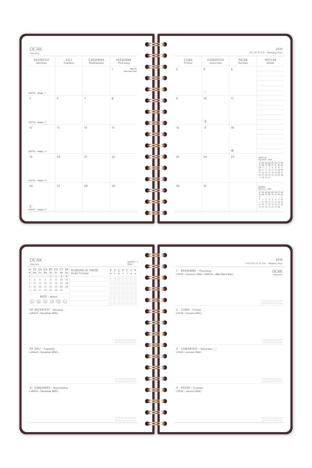 ✔ 2026 Ajanda – Aylık + Haftalık Planlama Düzeni
