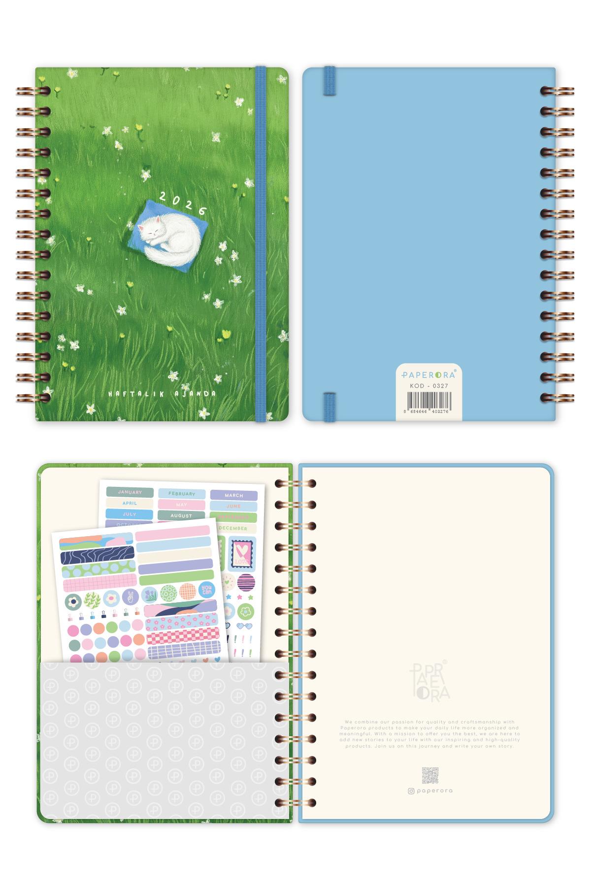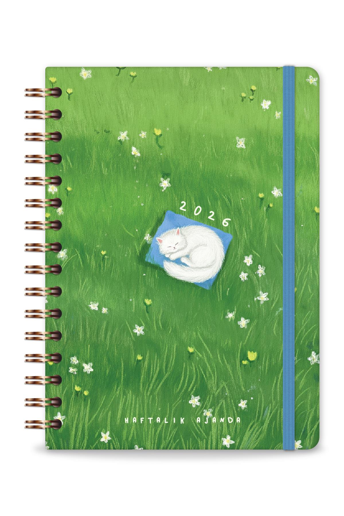 2026 A5 Spiralli Haftalık Ajanda 12 Aylık - Kedi