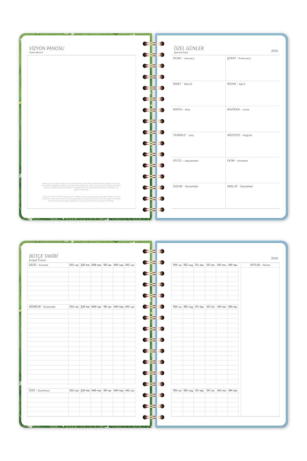 Ajandanın Yıllık Hedefler kısmı, 2026 yılına dair hedeflerinizi kâğıda dökmenize imkân tanır. Hedeflerinizi somut hale getirerek yıl boyunca odaklanmanızı kolaylaştırır.