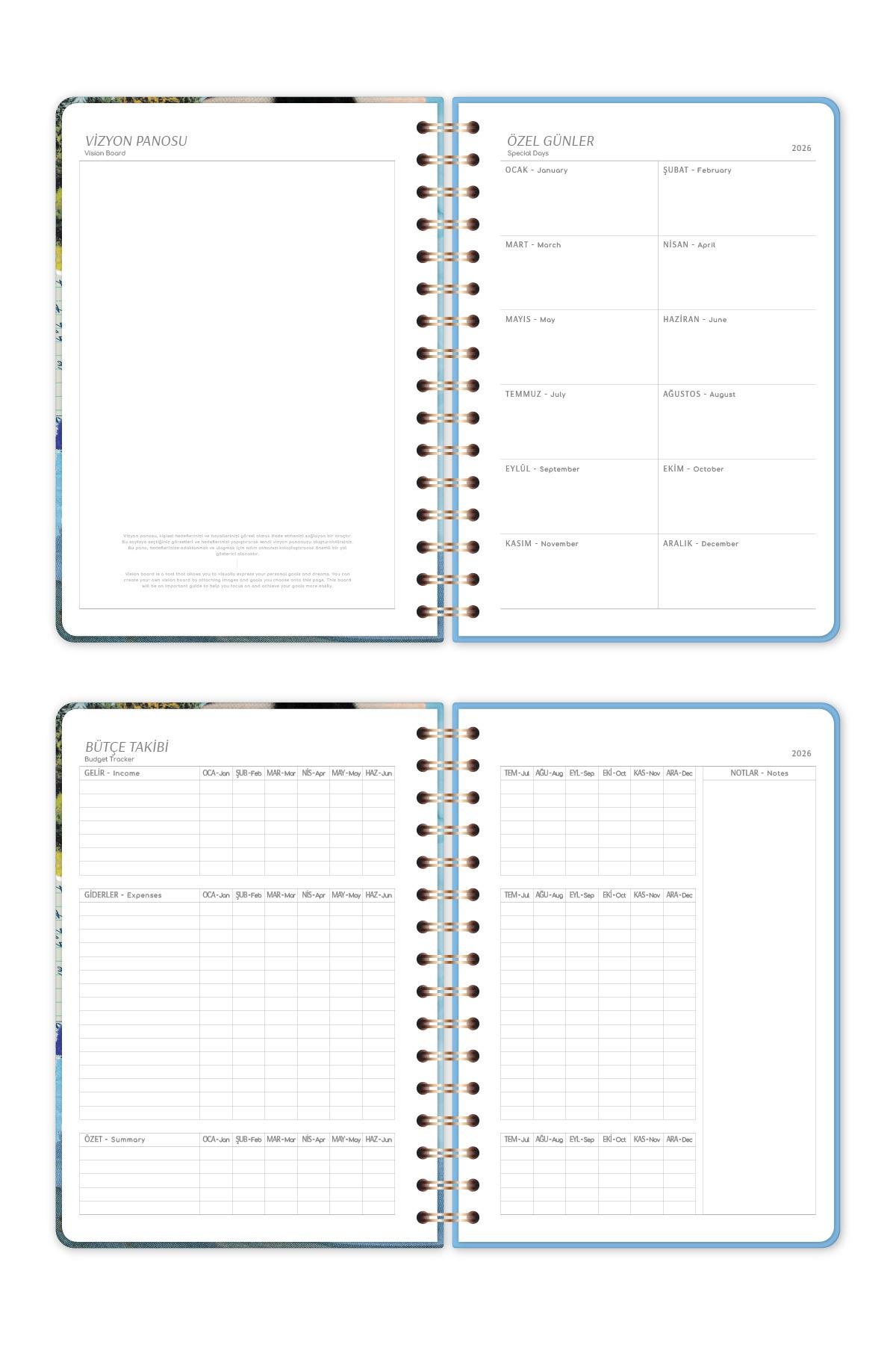 Ajandanın Yıllık Hedefler kısmı, 2026 yılına dair hedeflerinizi kâğıda dökmenize imkân tanır. Hedeflerinizi somut hale getirerek yıl boyunca odaklanmanızı kolaylaştırır.