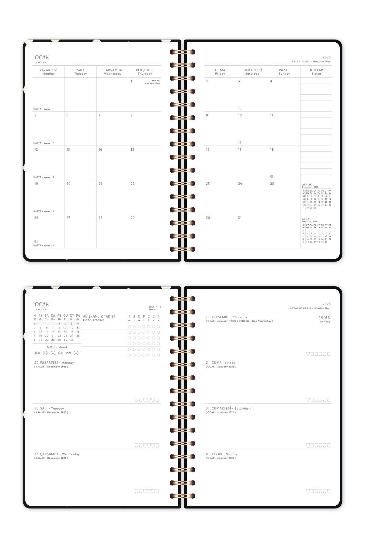 ✔ 2026 Ajanda – Aylık + Haftalık Planlama Düzeni