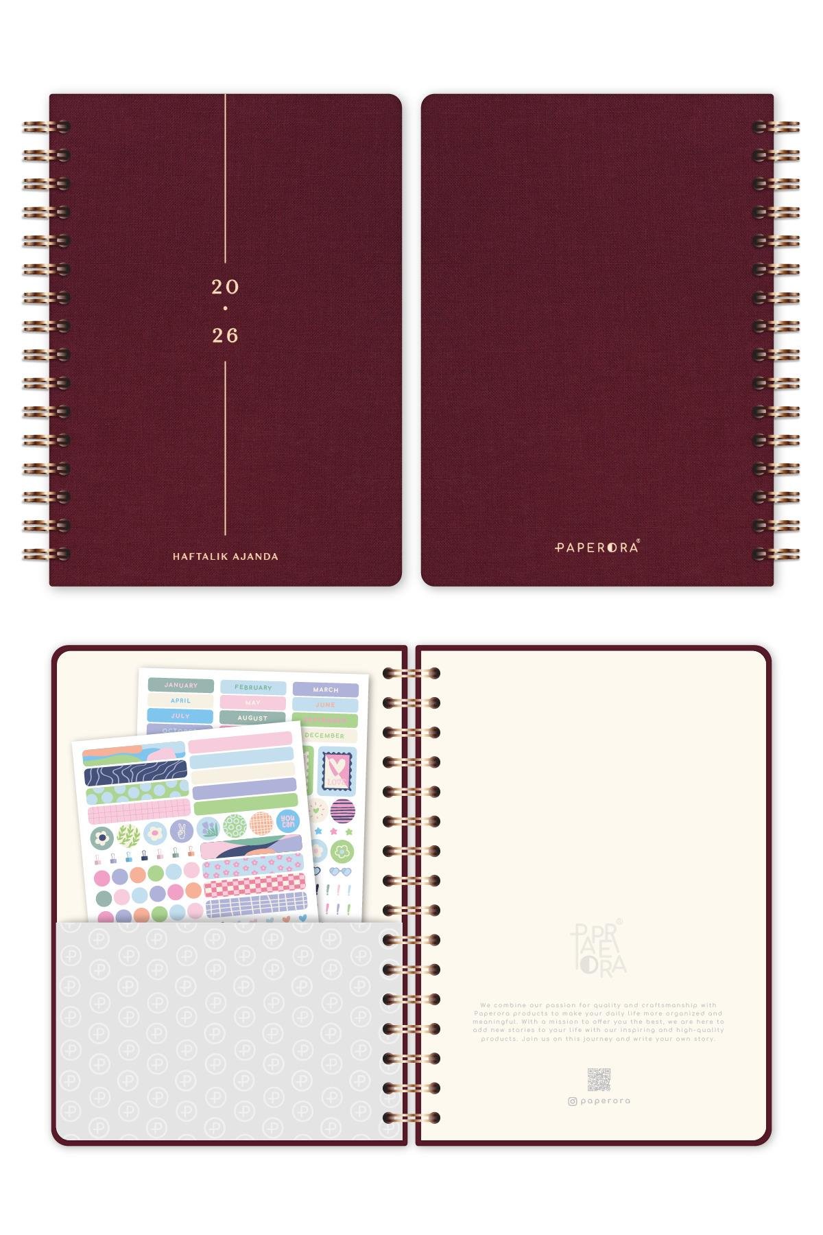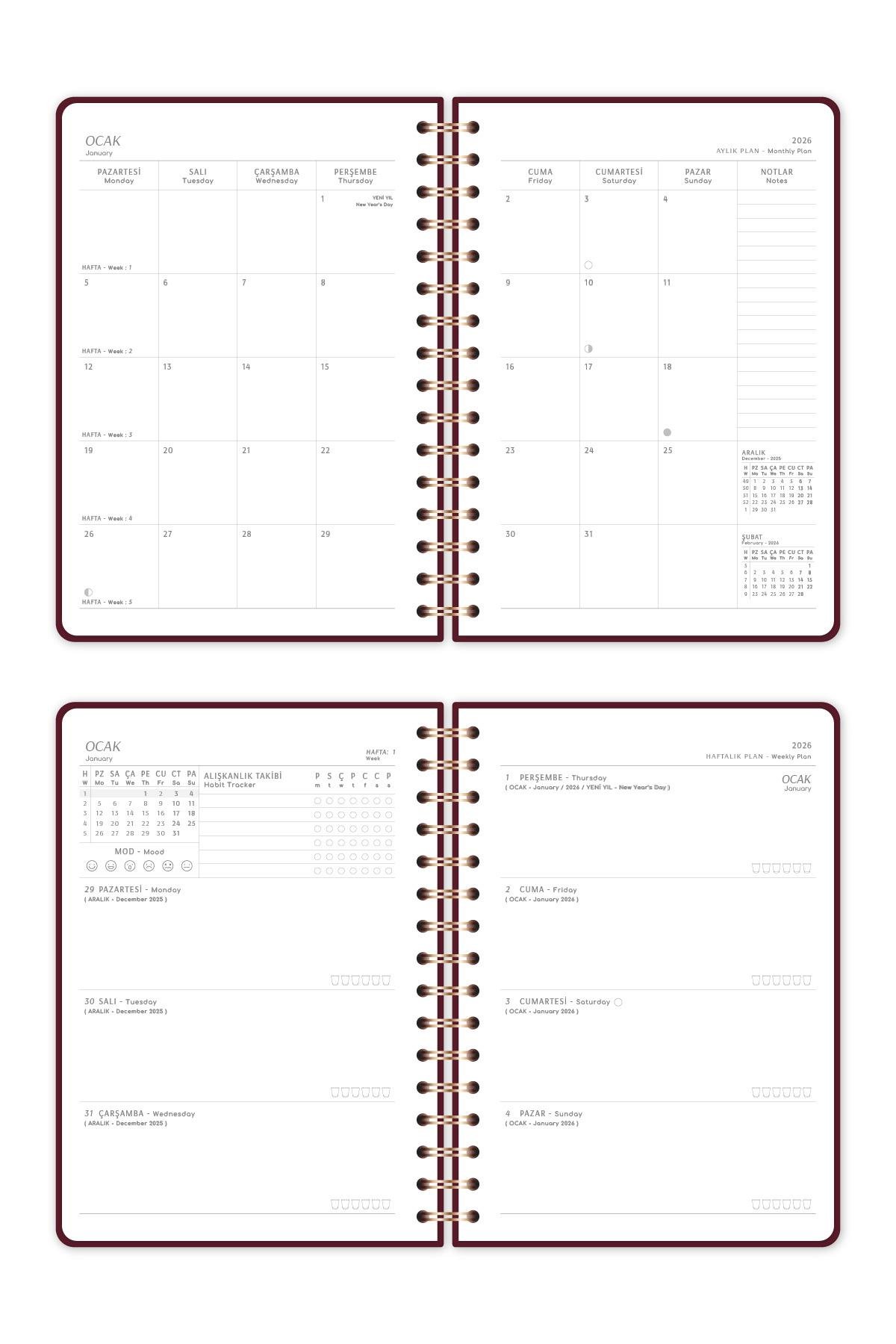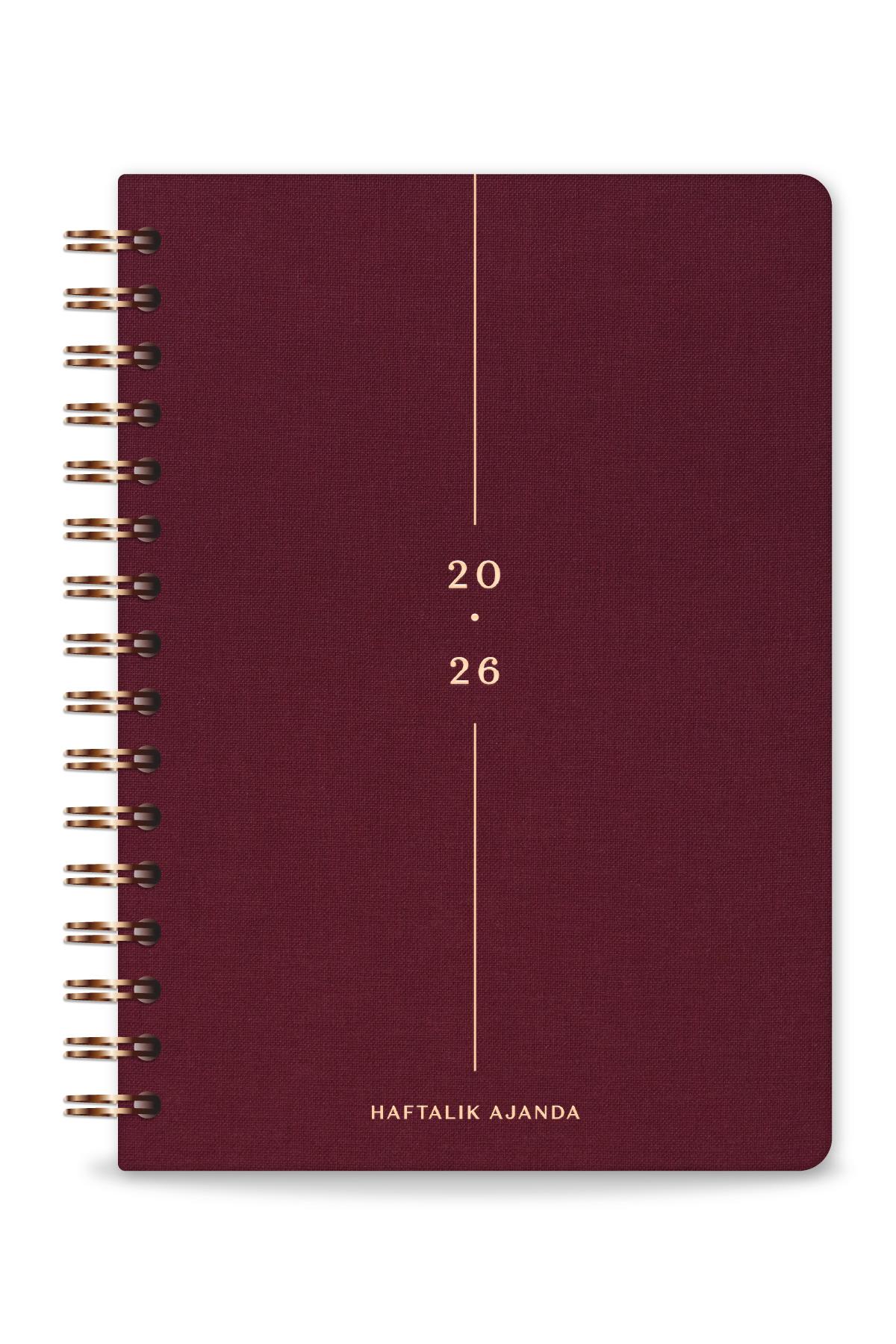 2026 A5 Spiralli Keten Haftalık Ajanda 12 Aylık - Bordo