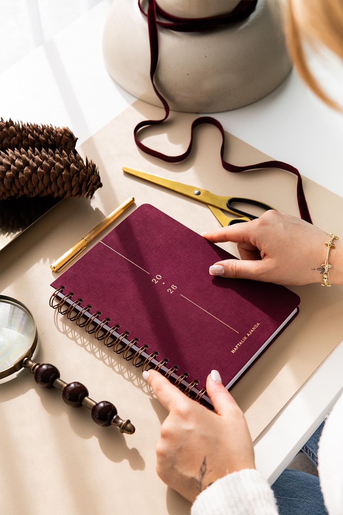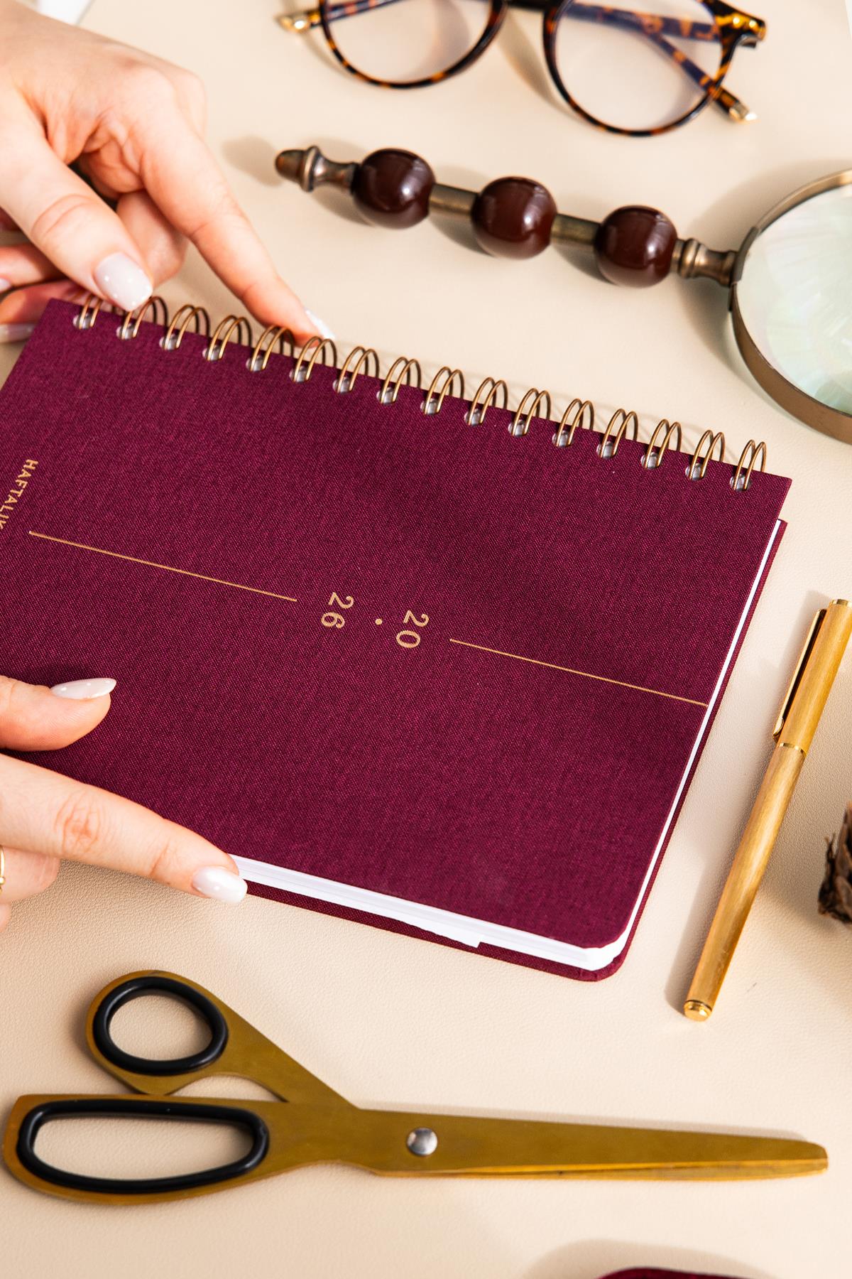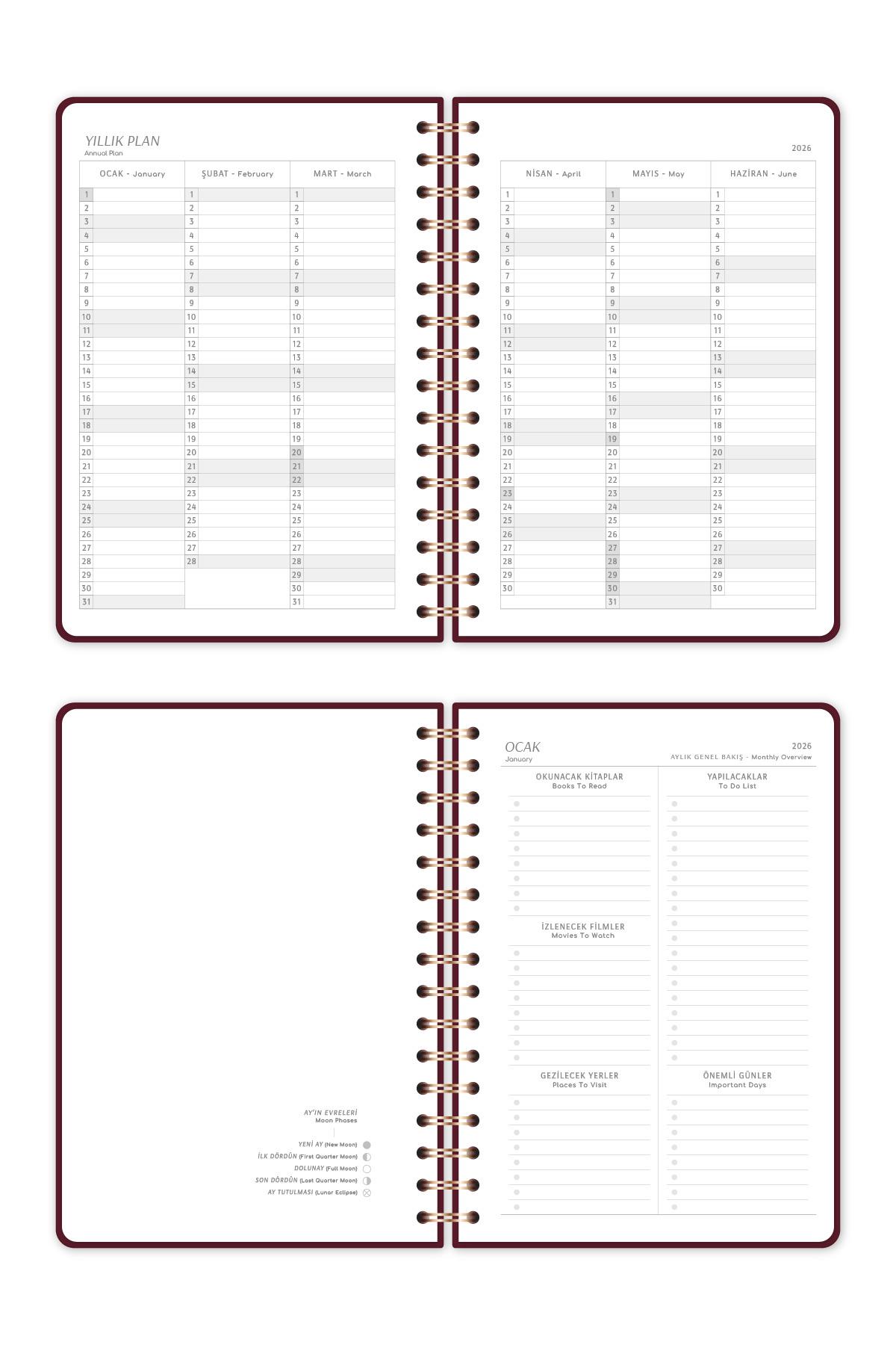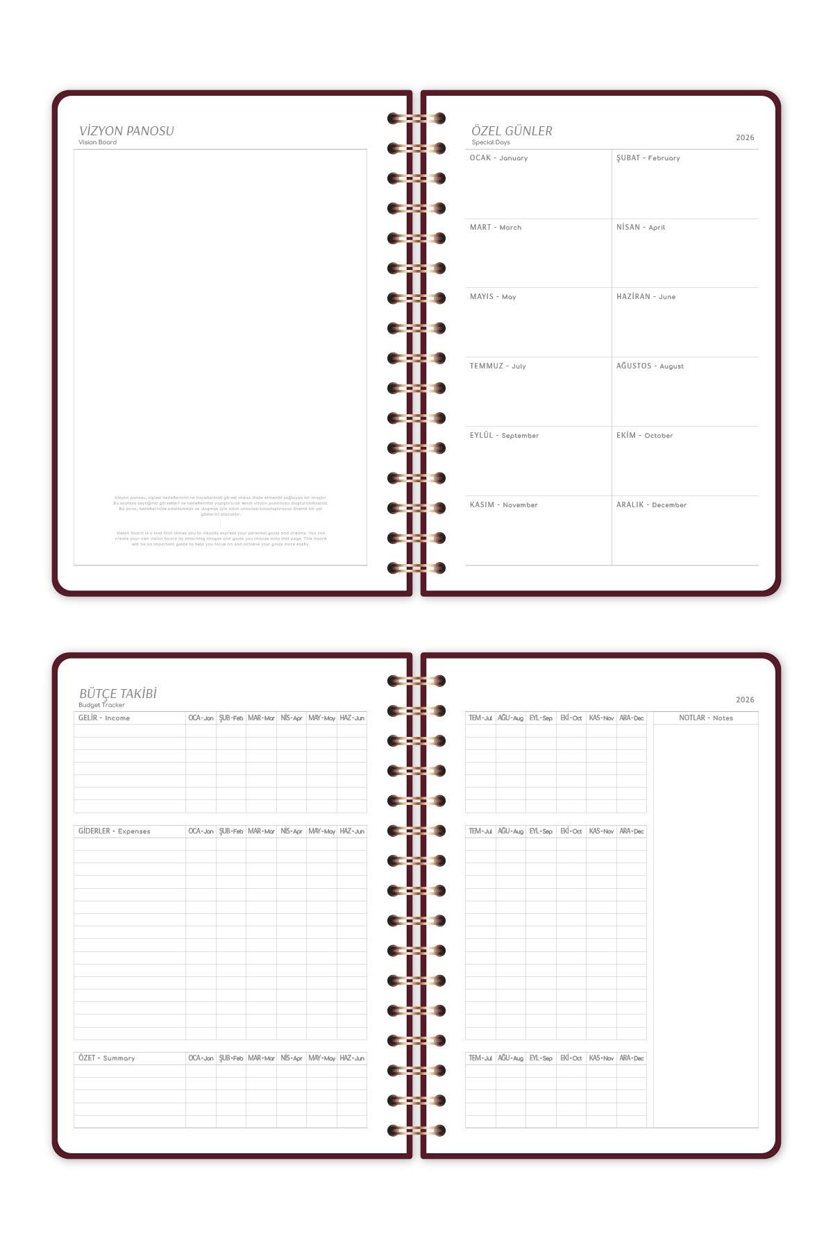 2026 A5 Spiralli Keten Haftalık Ajanda 12 Aylık - Bordo