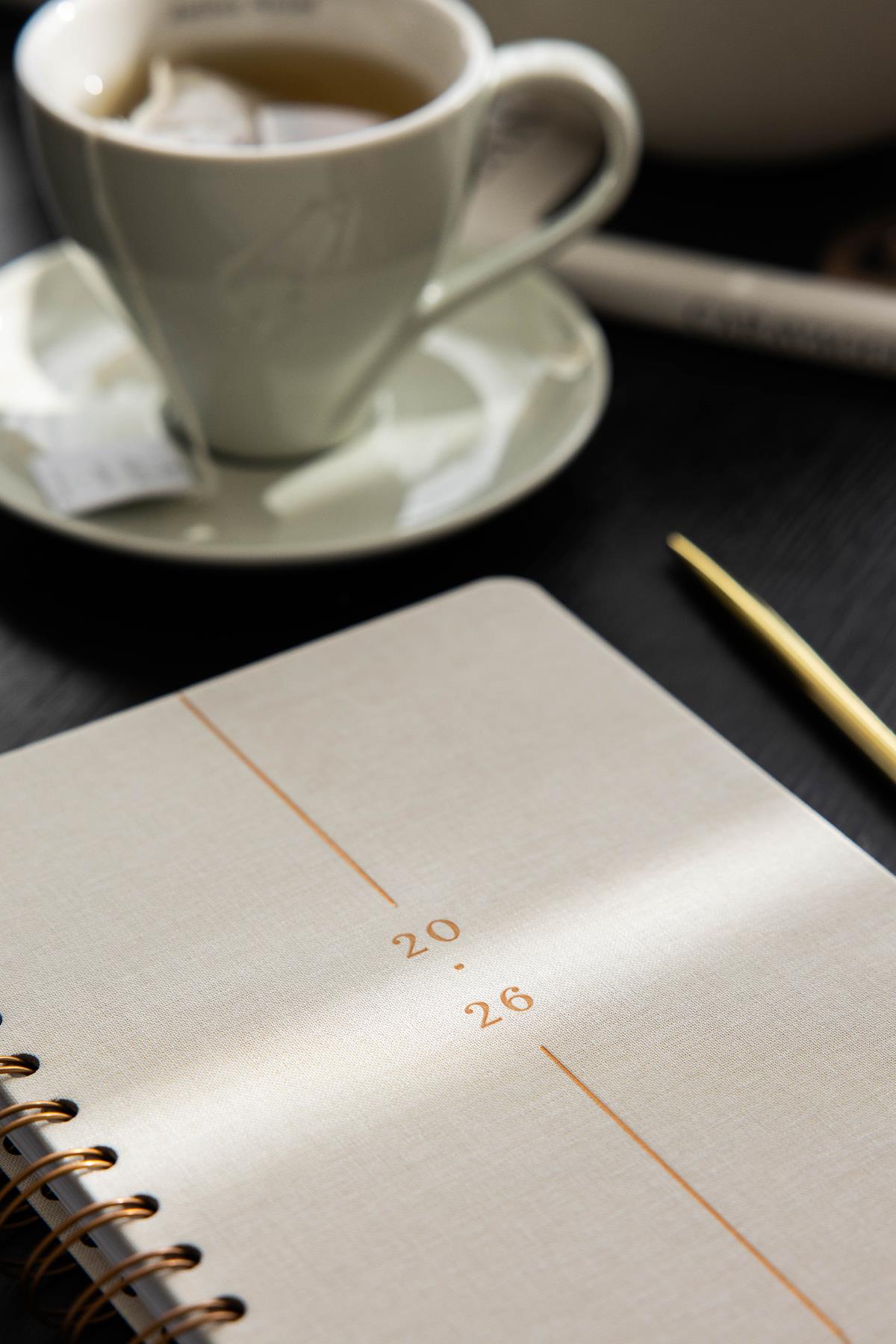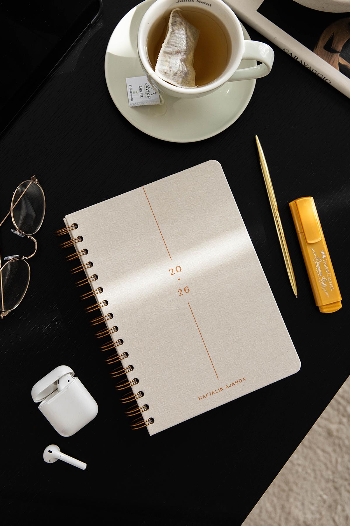 2026 A5 Spiralli Keten Haftalık Ajanda 12 Aylık - Krem