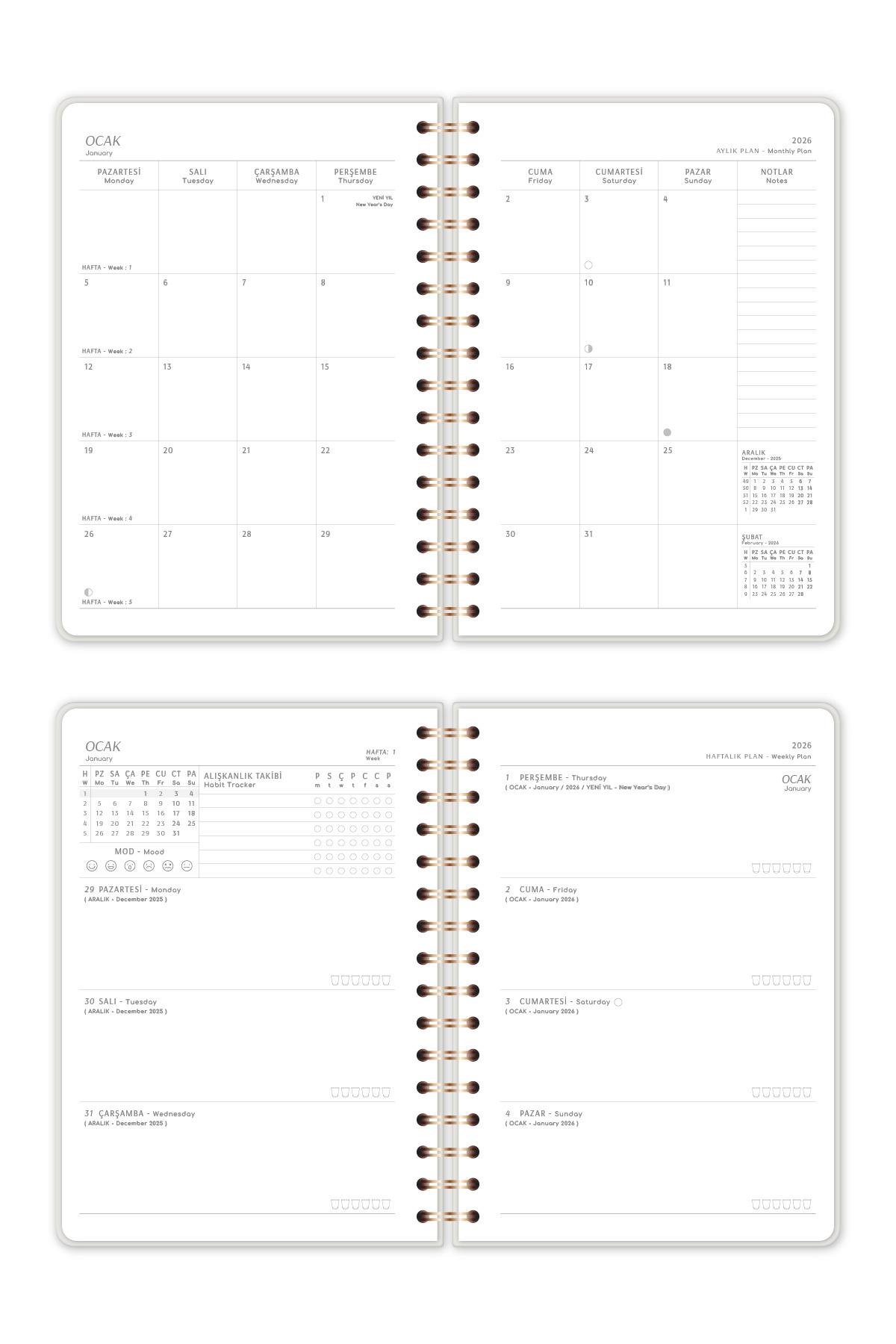 2026 Ajanda – Aylık + Haftalık Planlama Düzeni