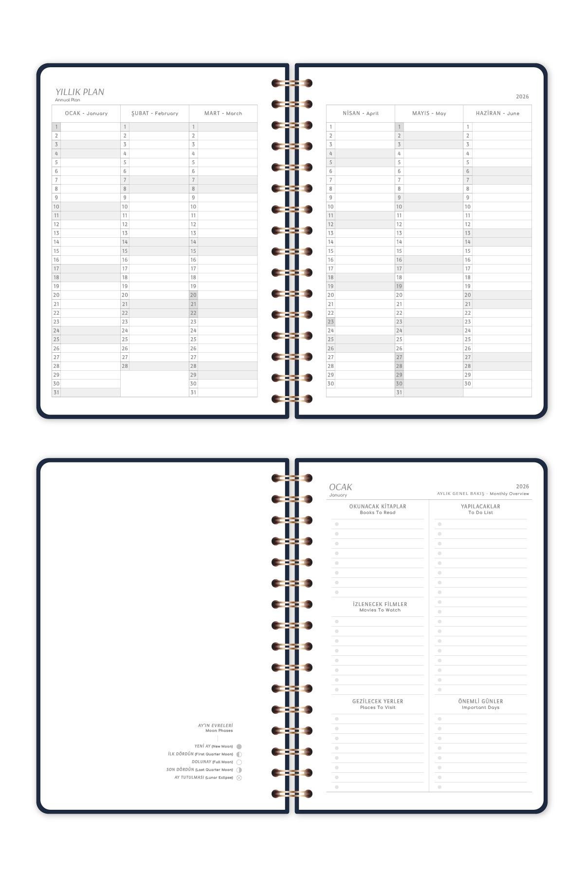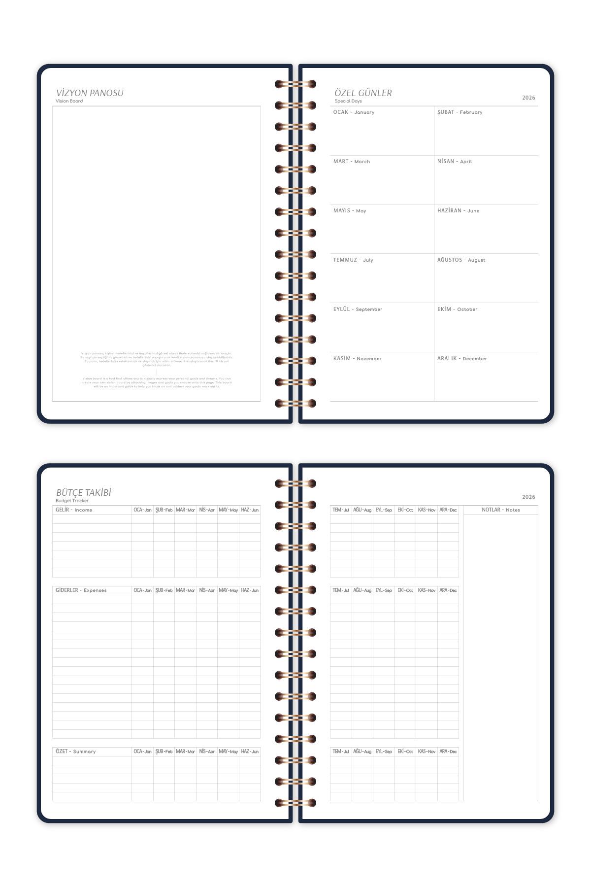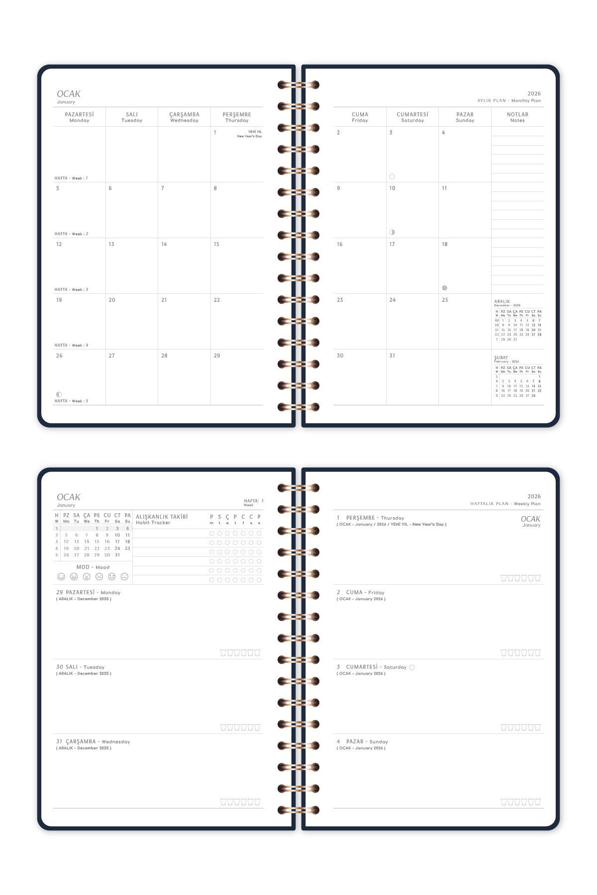 2026 A5 Spiralli Keten Haftalık Ajanda 12 Aylık - Lacivert