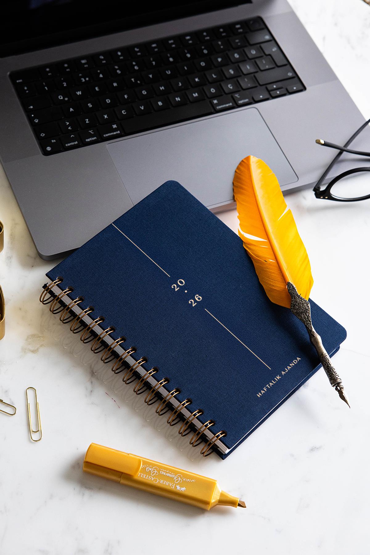 Ajandanın haftalık plan sayfaları, haftanın günlerini ve önceliklerini görmenizi sağlar. Görevlerinizi, toplantılarınızı veya kişisel notlarınızı düzenli bir biçimde kaydedebilir; hafta boyunca yapılacakları etkili şekilde takip edebilirsiniz.