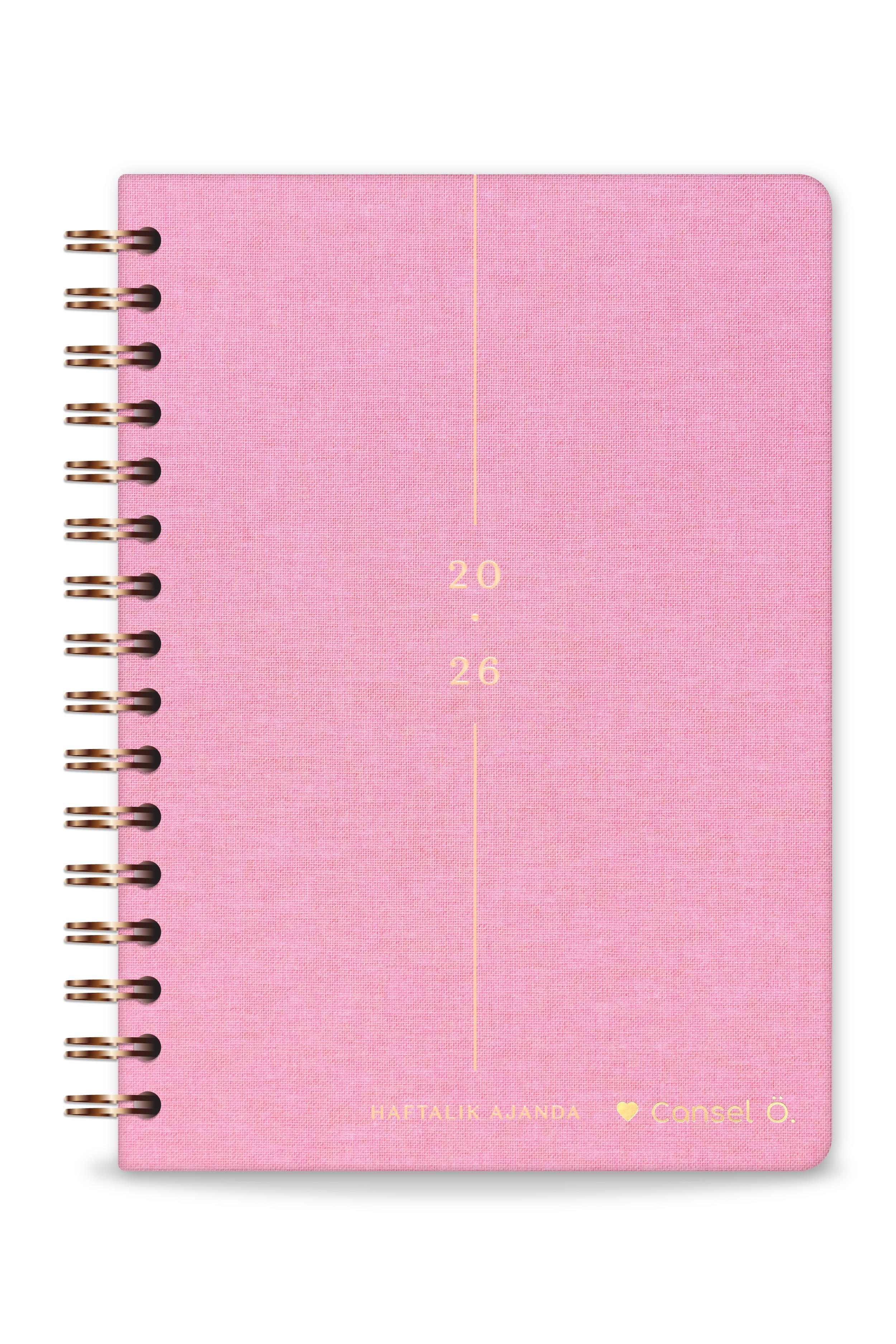 2026 A5 Spiralli Keten Haftalık Ajanda 12 Aylık - Şeker Pembe