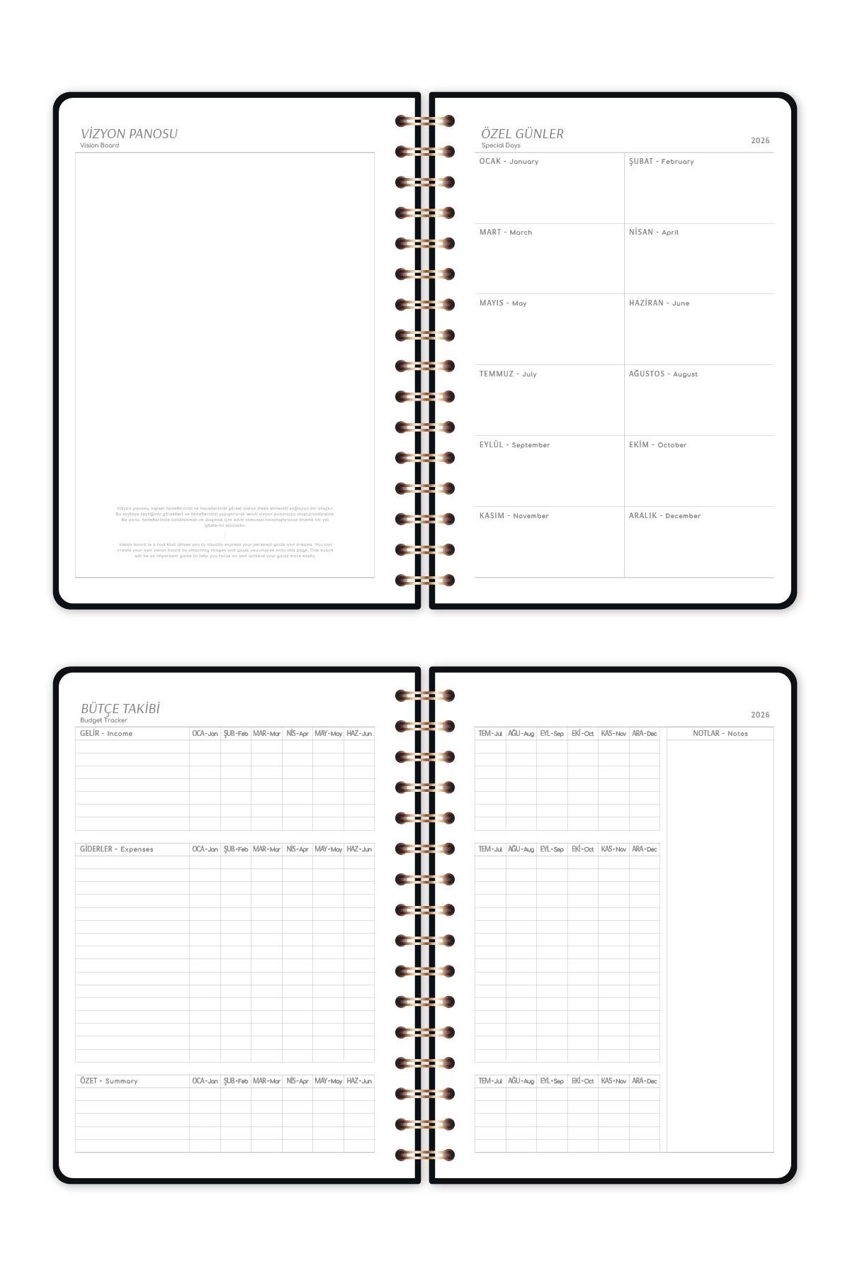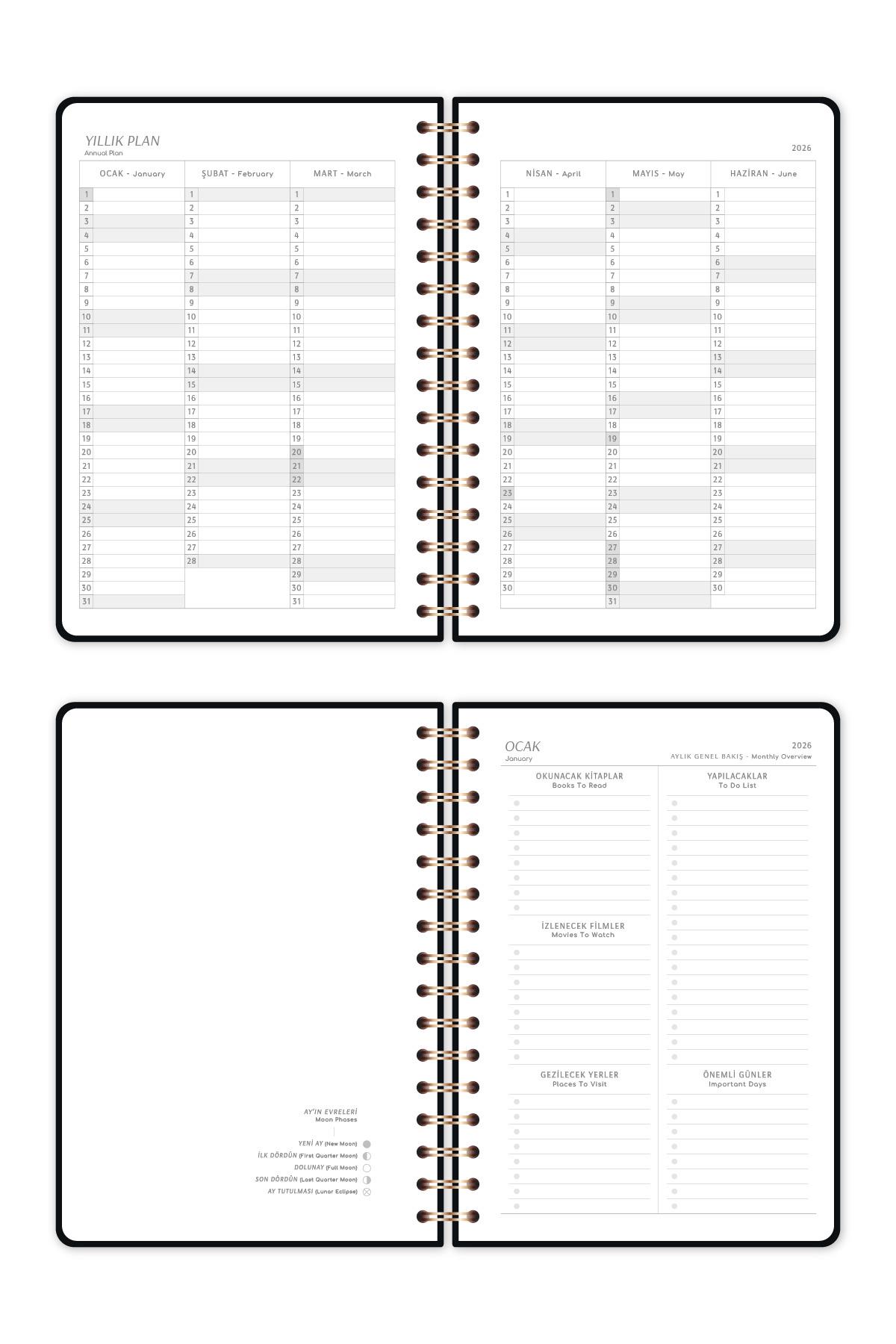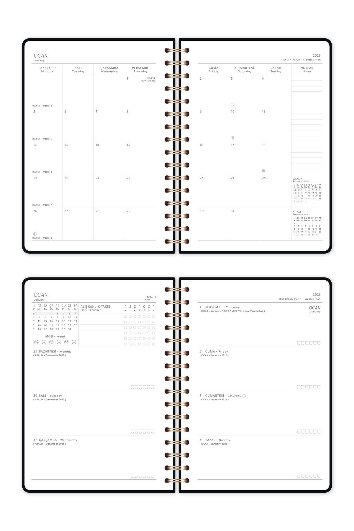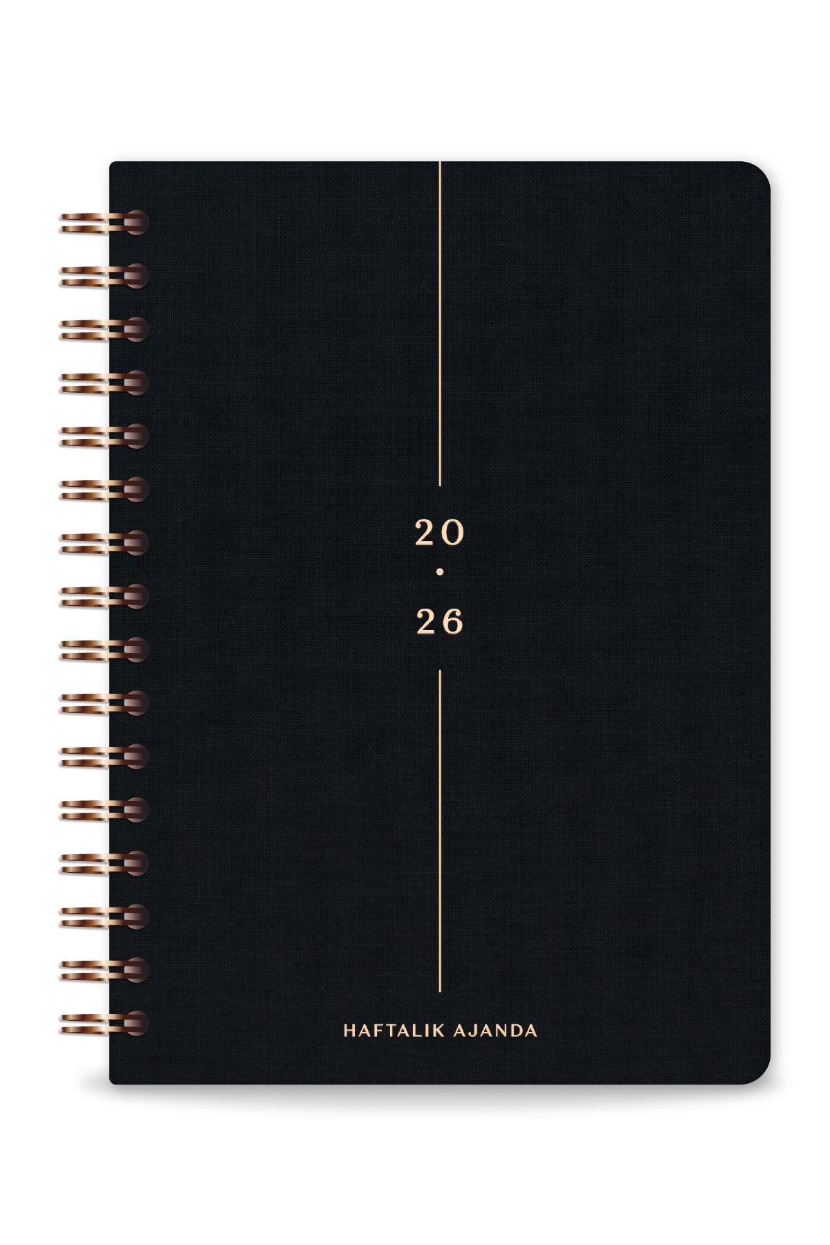 2026 A5 Spiralli Keten Haftalık Ajanda 12 Aylık - Siyah