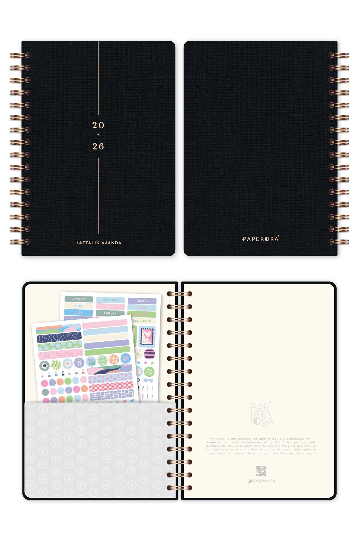 Yıl boyunca planlı, üretken ve motive bir yaşam için yardımcı bir araç olarak tasarlanmıştır. Kaliteli malzeme seçimi ve detaylı kurgulanmış içerikleriyle Paperora 2026 Planlayıcı Ajanda, düzenli bir yaşam tarzını desteklemeyi amaçlar.