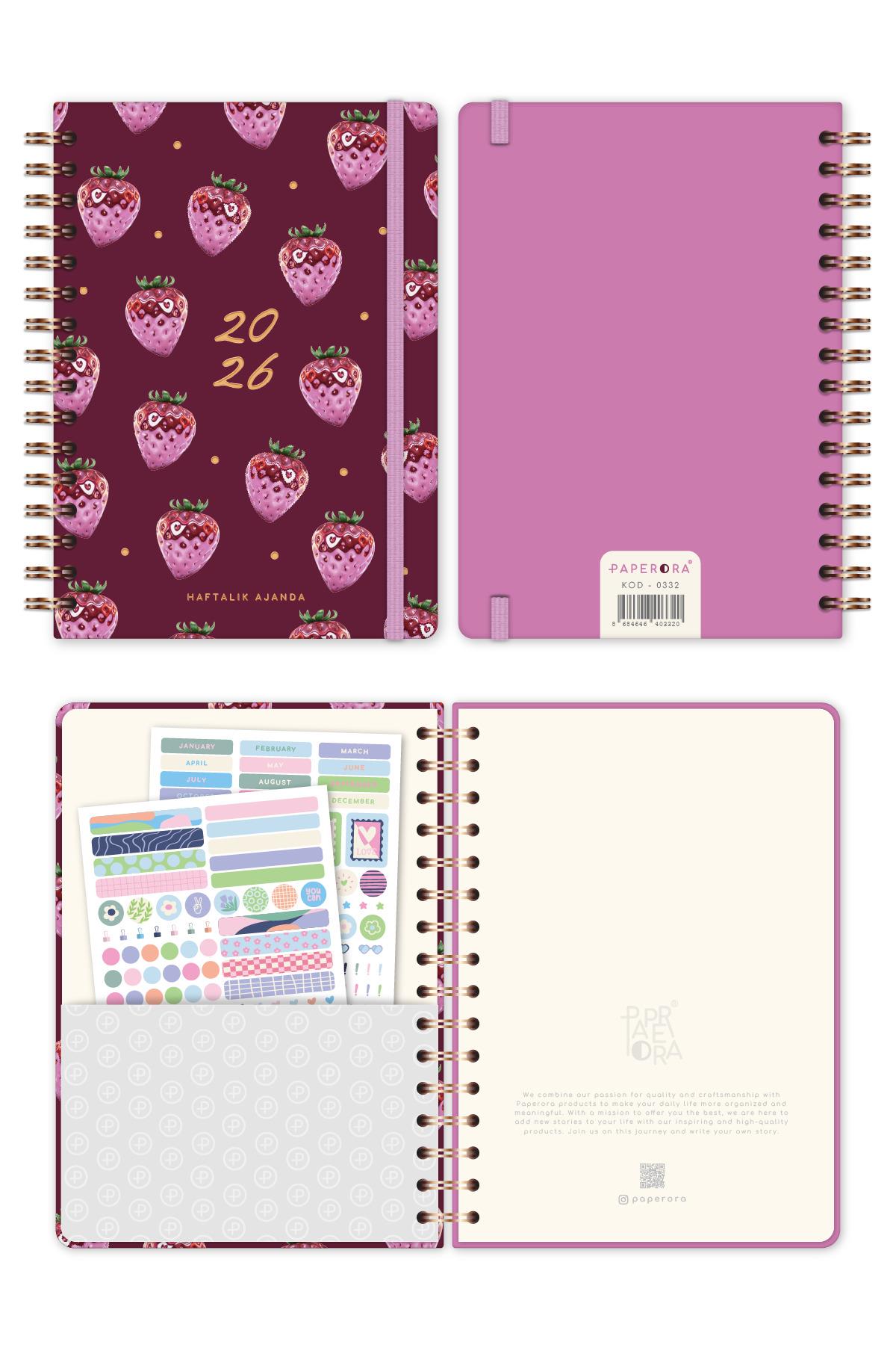 ✦ Paperora2026 Haftalık Ajanda, y ıl boyunca planlı, üretken ve motive bir yaşamiçin yardımcı bir araç olarak tasarlanmıştır. Kaliteli malzeme seçimi vedetaylı kurgulanmış içerikleriyle Paperora 2026 Planlayıcı Ajanda, düzenli biryaşam tarzını desteklemeyi amaçlar.
