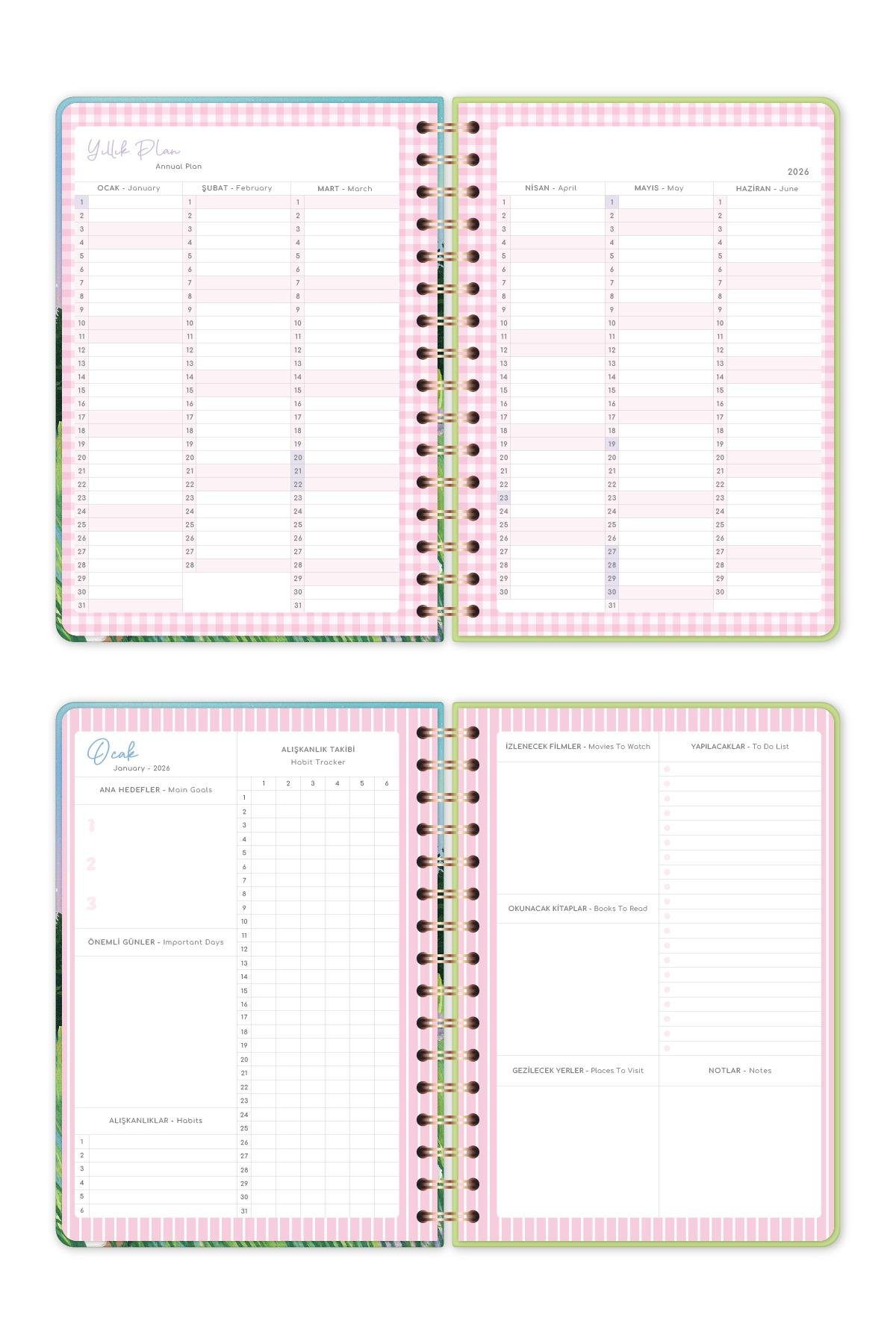 2026 A5Spiralli Renkli Planlayıcı Haftalık Ajanda 12 Aylık – Motivasyon Sayfalı