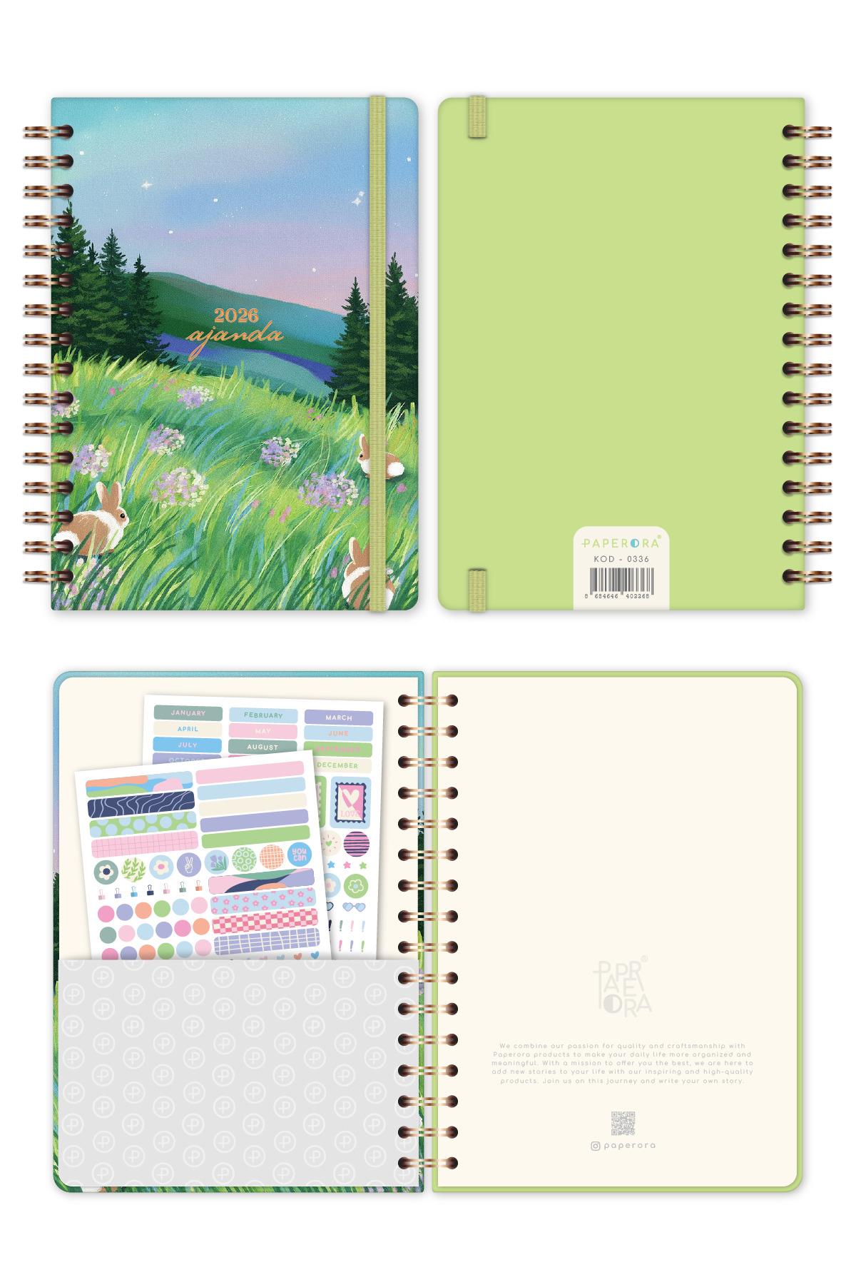 2026 A5 Spiralli Renkli Haftalık Ajanda 12 Aylık – Motivasyon Sayfalı Manzara