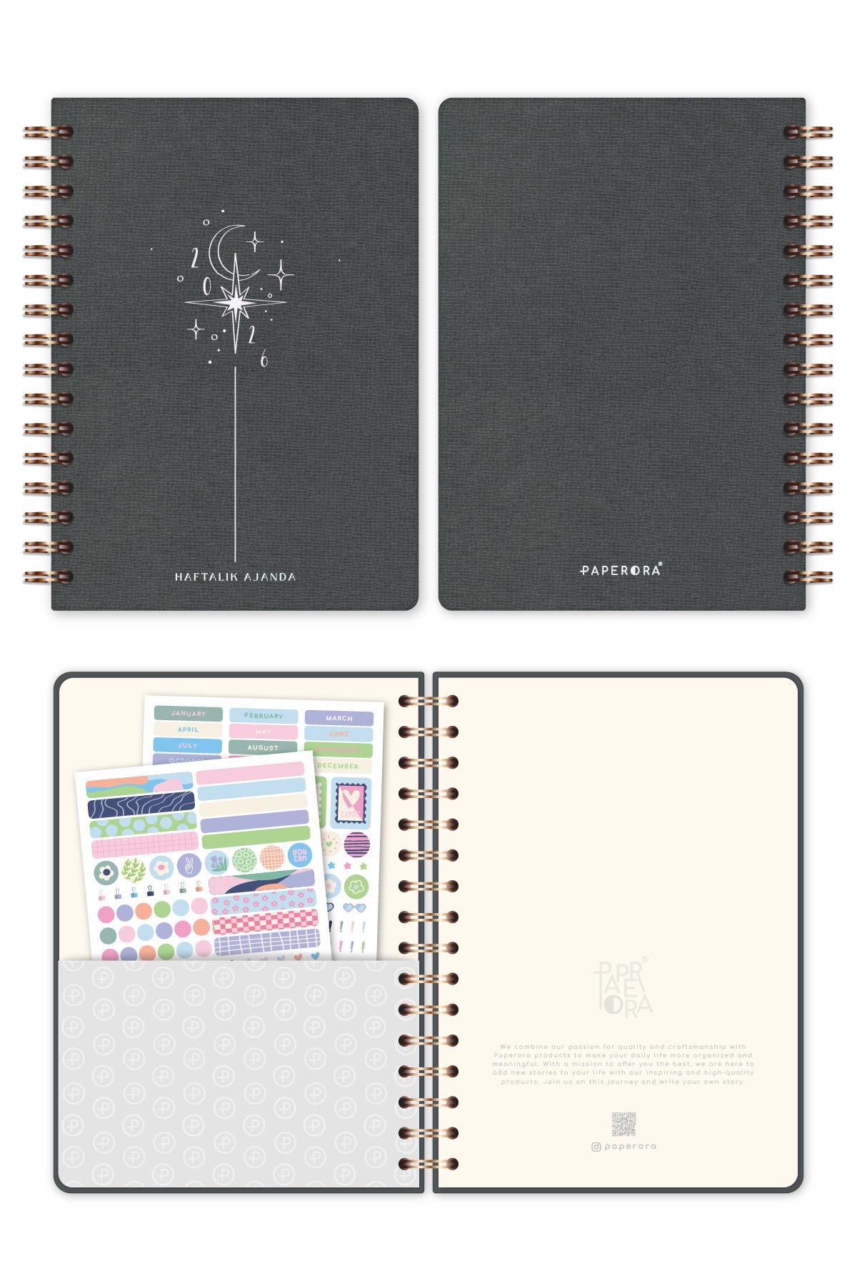 ✦ Yıl boyunca planlı, üretken ve motive bir yaşam için yardımcı bir araç olarak tasarlanmıştır. Kaliteli malzeme seçimi ve detaylı kurgulanmış içerikleriyle Paperora 2026 Planlayıcı Ajanda, düzenli bir yaşam tarzını desteklemeyi amaçlar.