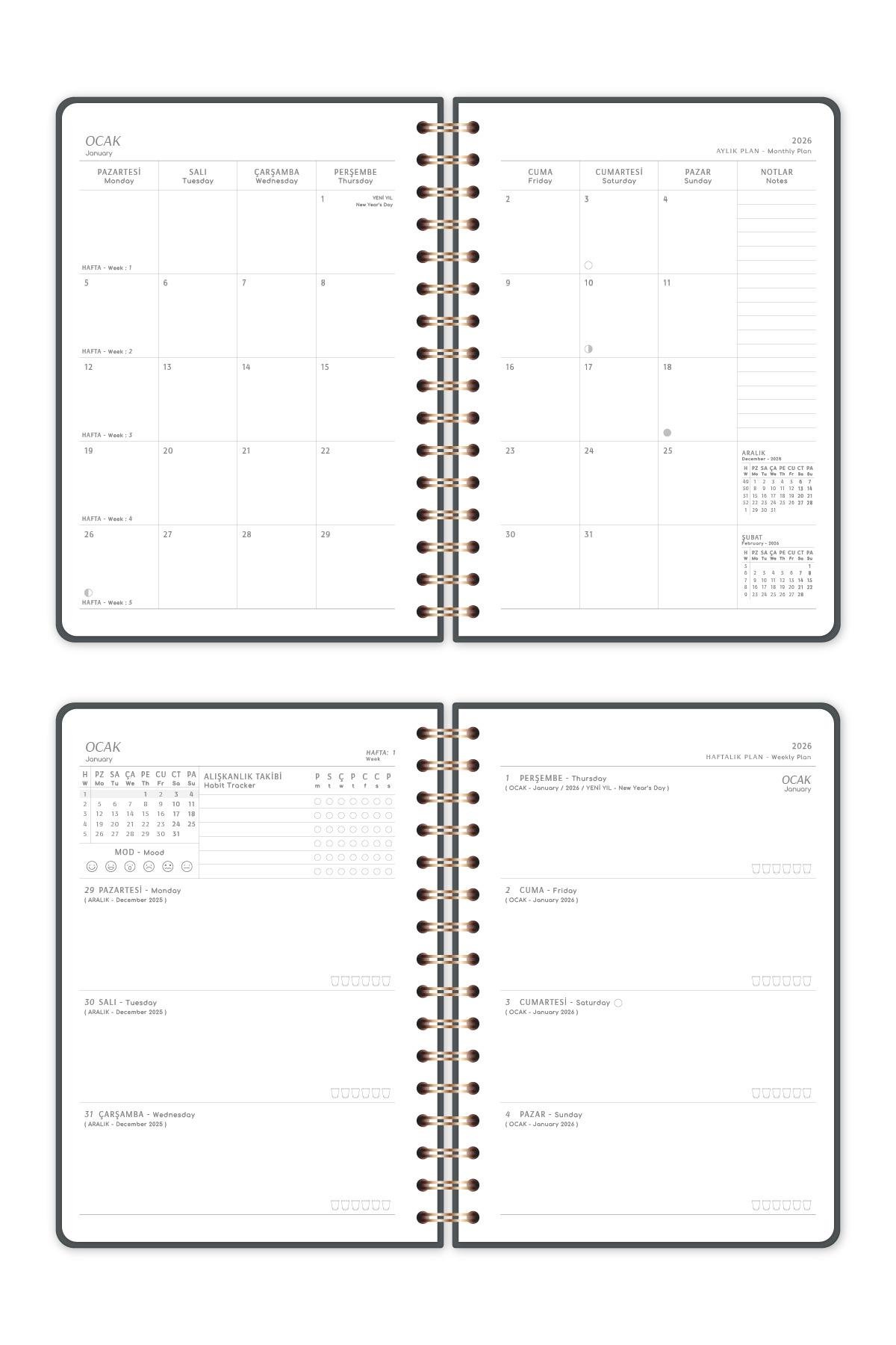 ✔ 2026 Ajanda – Aylık + Haftalık Planlama Düzeni