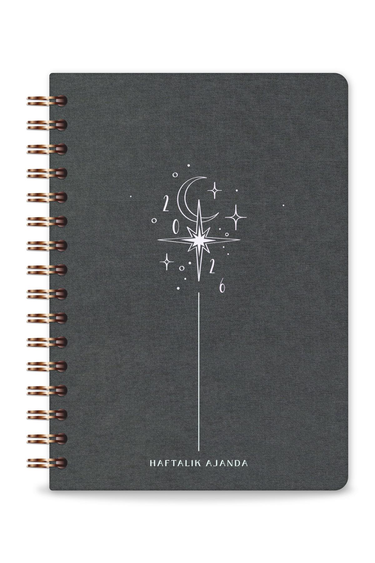 2026 A5 Spiralli Kir ve Suya Dayanıklı Keten Haftalık Ajanda 12 Aylık