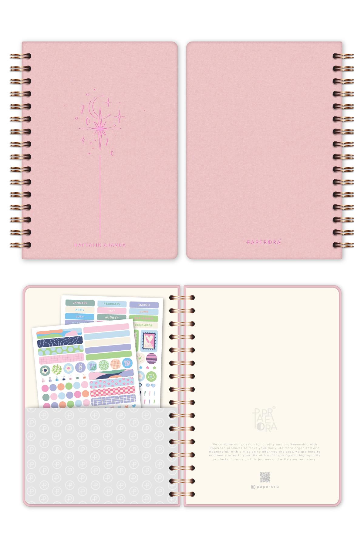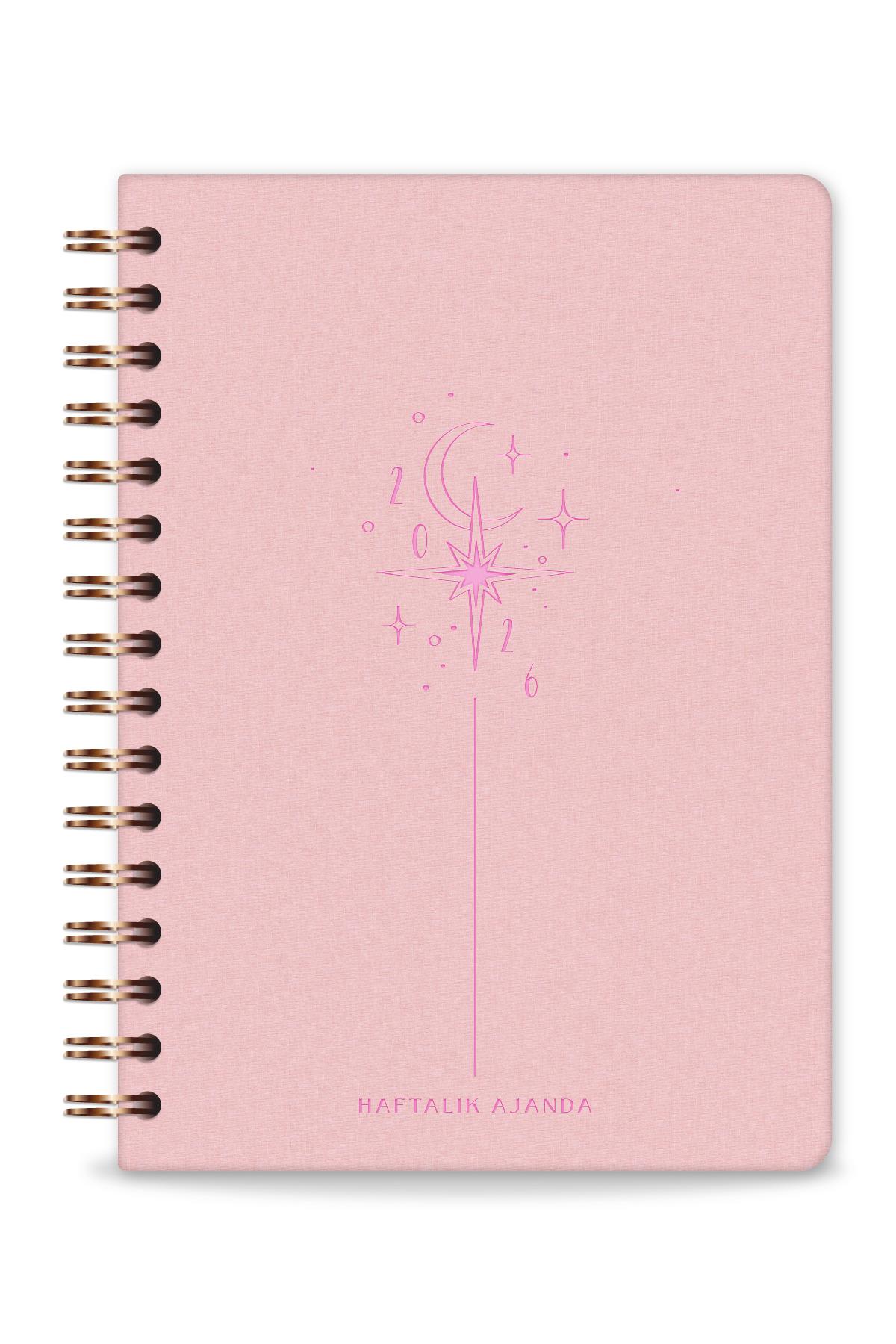 2026 Spiralli A5 Haftalık Ajanda – Kir ve Suya Dayanıklı Sert Kapak - Pembe