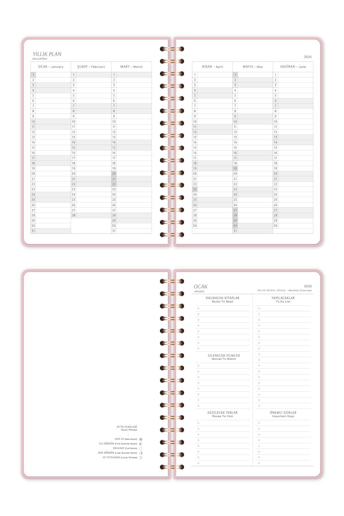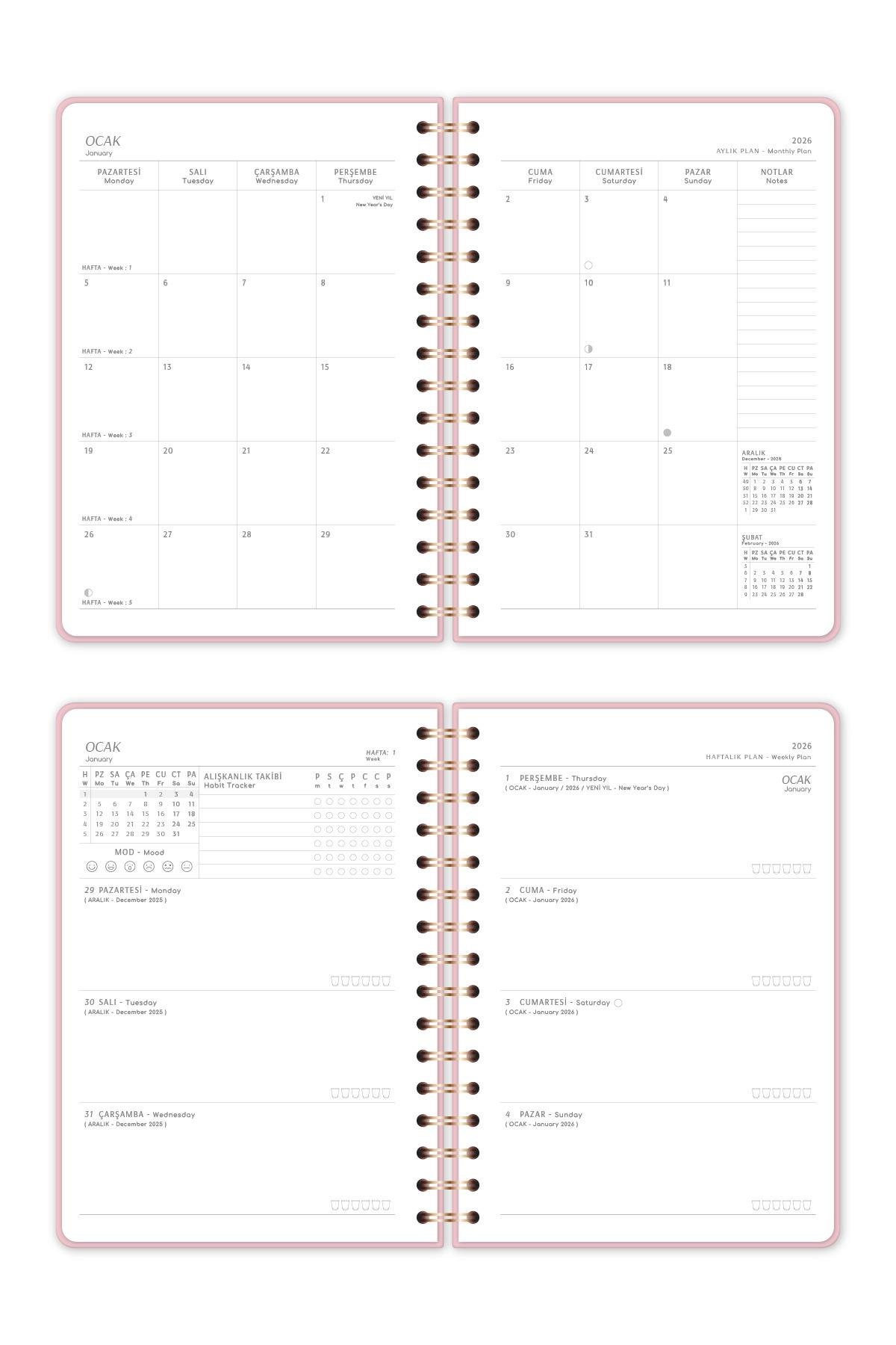 ✔ 2026 Ajanda – Aylık + Haftalık Planlama Düzeni