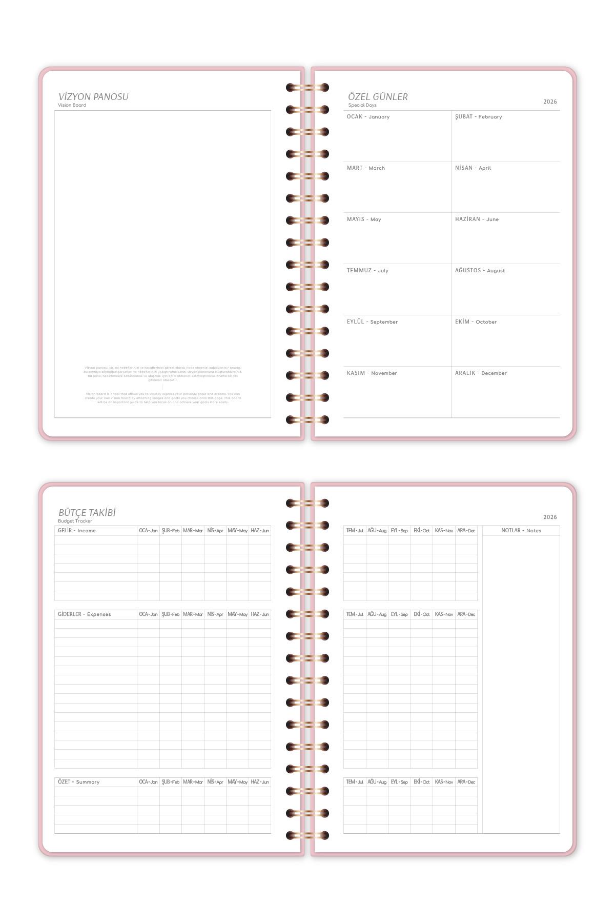 ✦ Unutulmaması gereken anlar ve özel günler için de Özel Günler sayfası tasarlanmıştır. Burada önemli tarihleri not alarak, hazırlıklarınızı etkin bir şekilde tamamlayabilirsiniz.