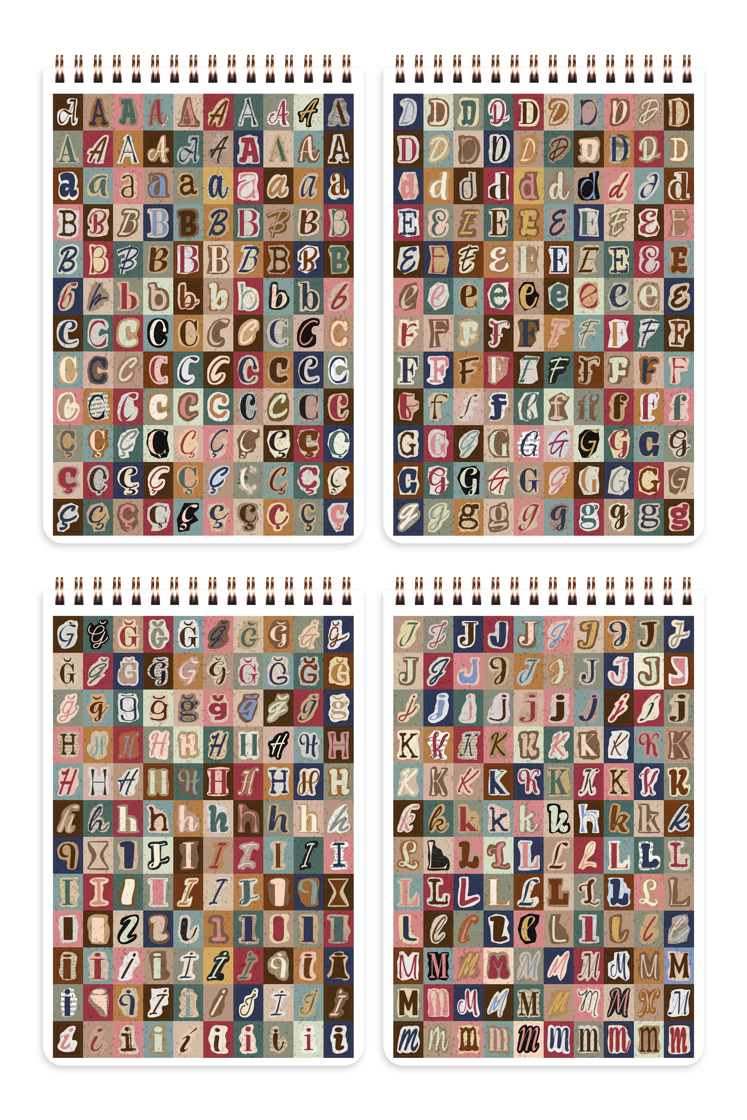 Defter içinde yer alan yüzlerce harf, rakam ve noktalama işareti stickerı, farklı renk ve stillerde hazırlanmıştır. Böylece yazılarınızı vurgulayabilir, başlıklar oluşturabilir veya kendi el yazınızı destekleyen özgün düzenlemeler yapabilirsiniz.