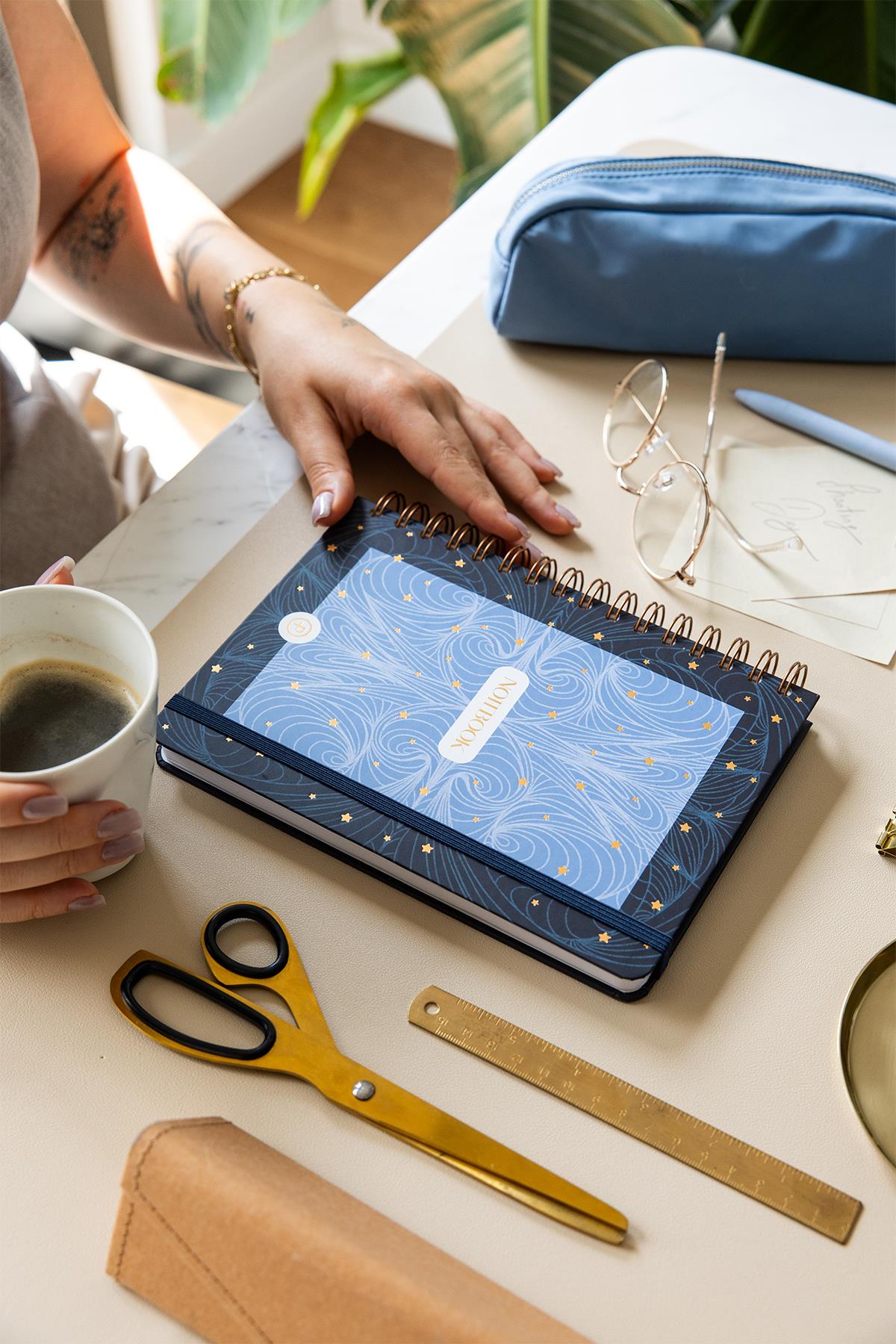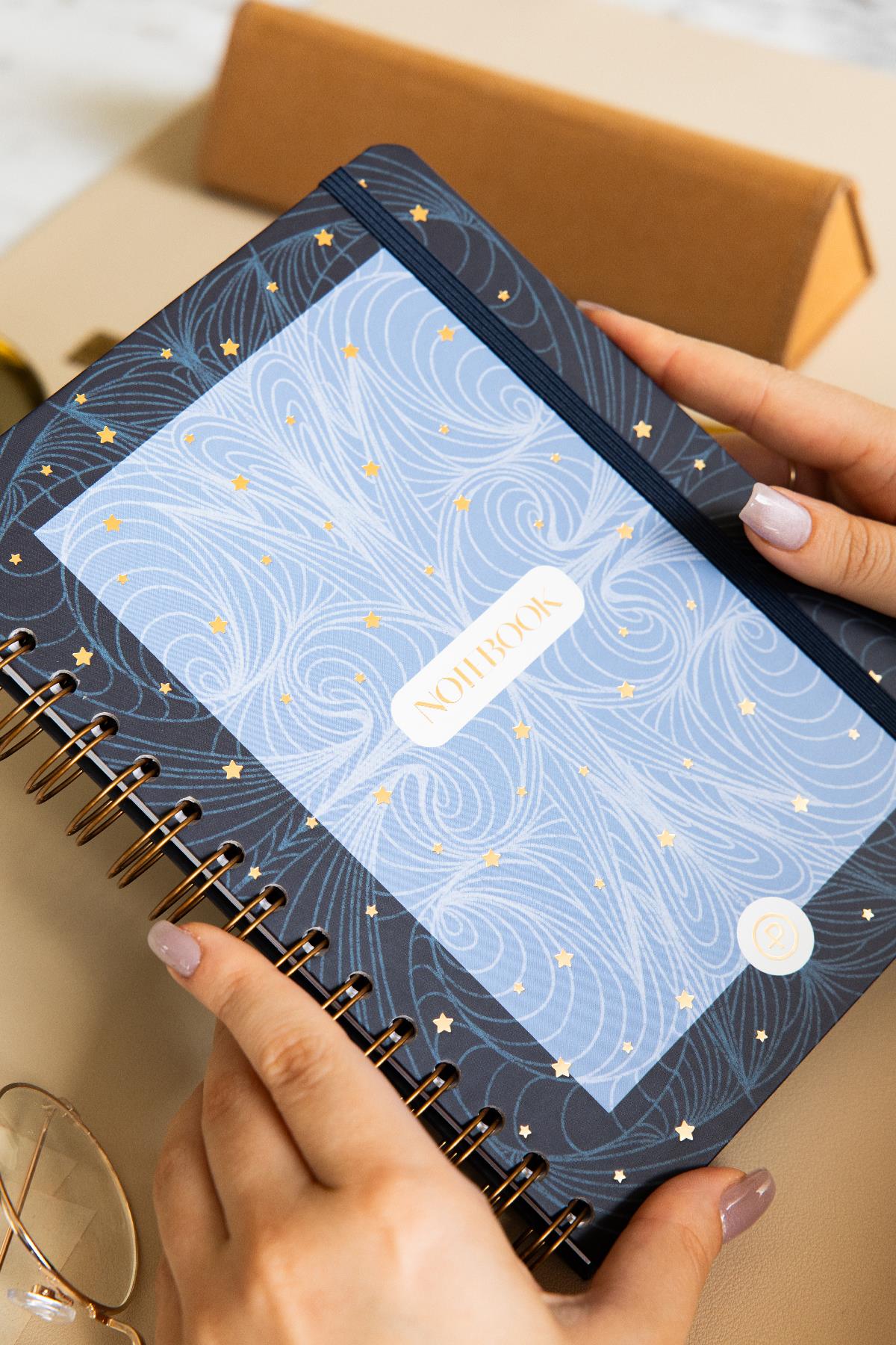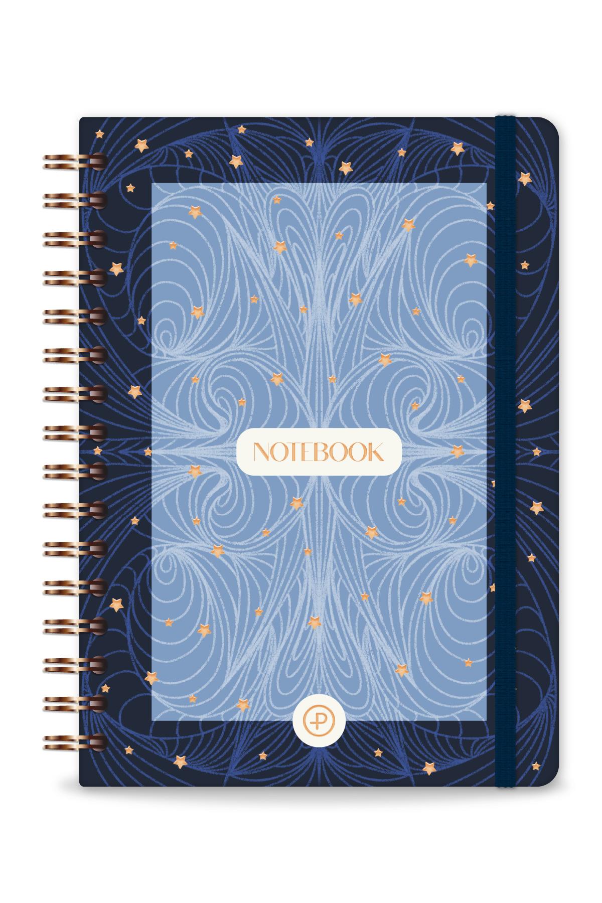 A5 Spiralli Sert Kapak Lastikli Kareli Not Defteri Lacivert