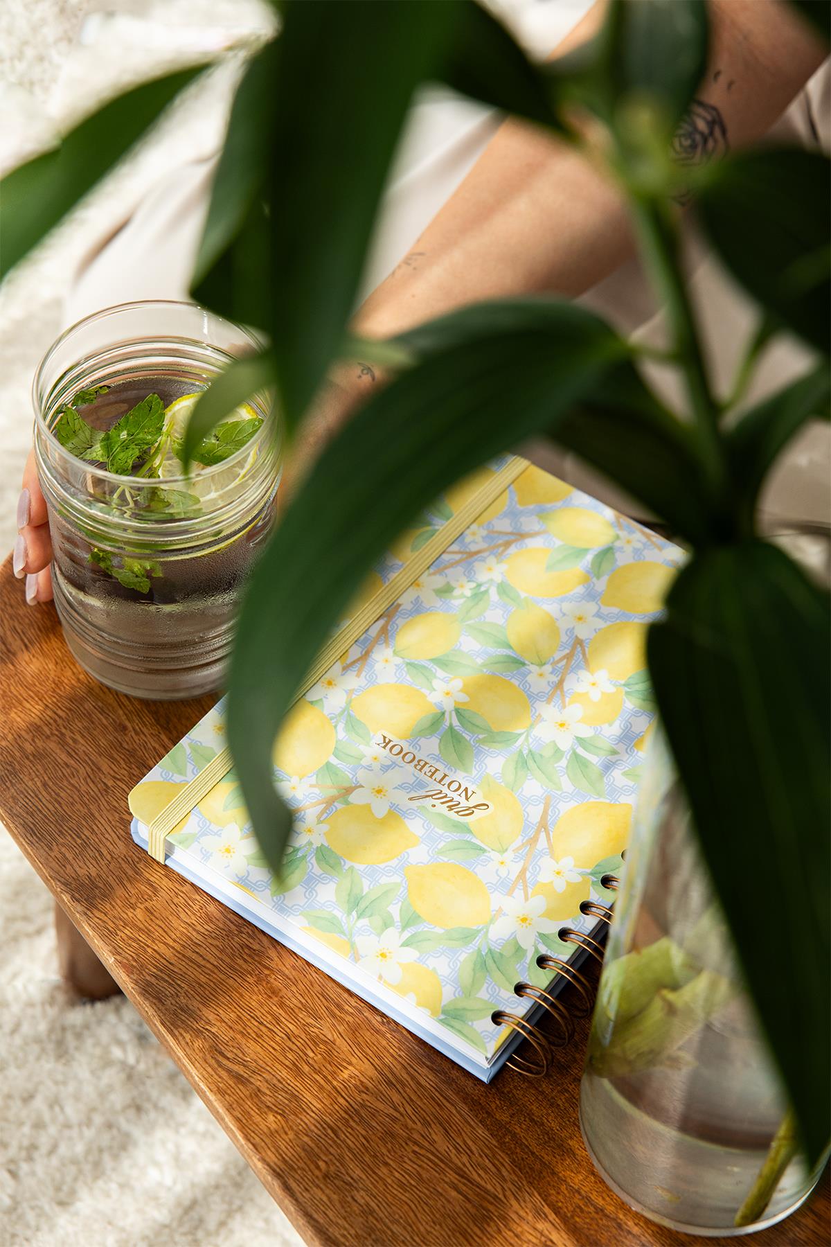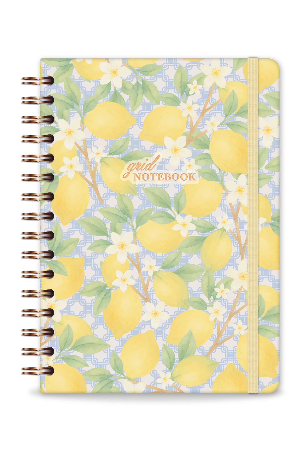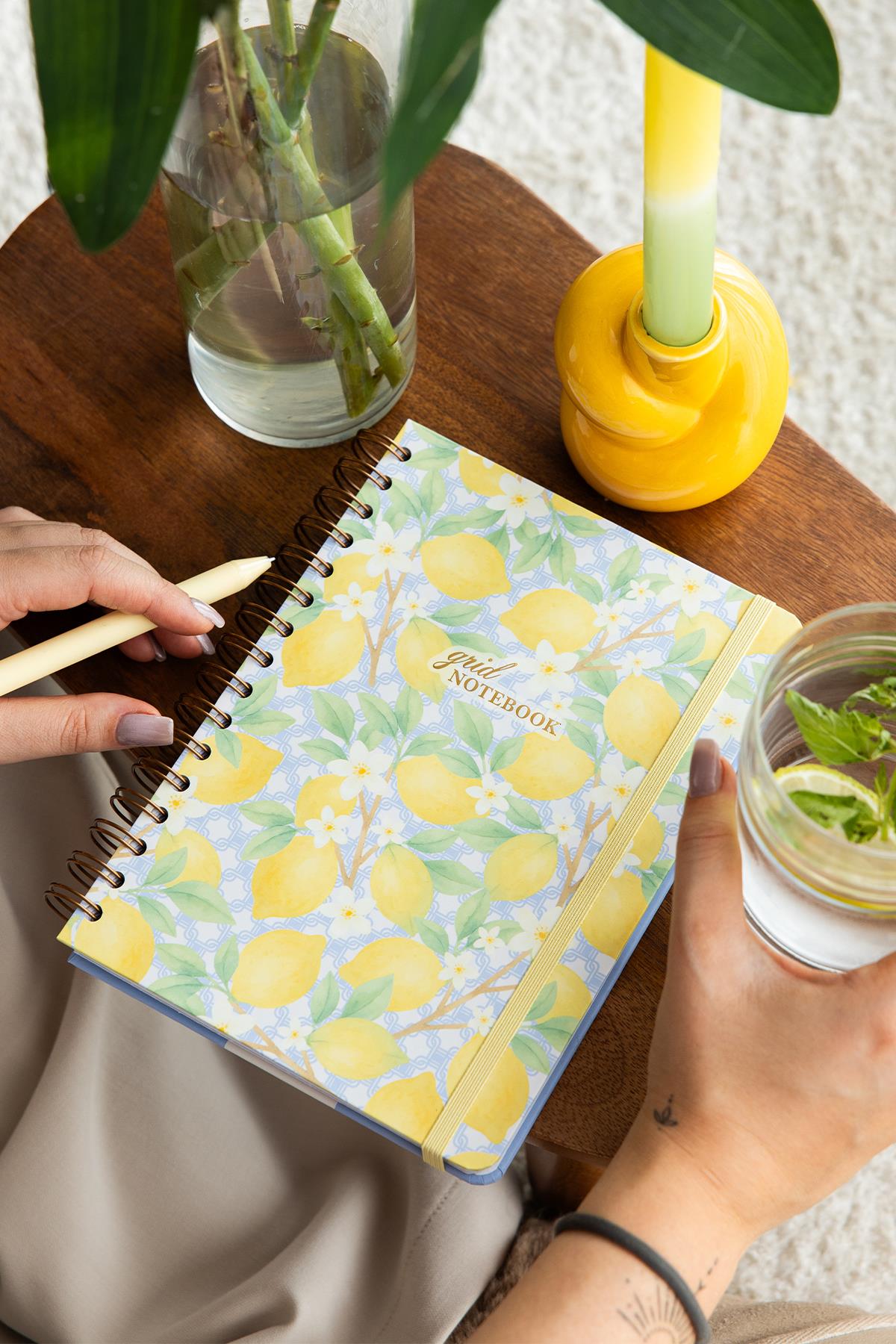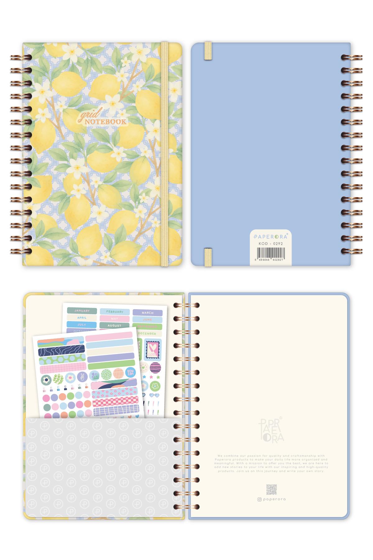 A5 Spiralli Sert Kapak Lastikli Kareli Not Defteri Limon