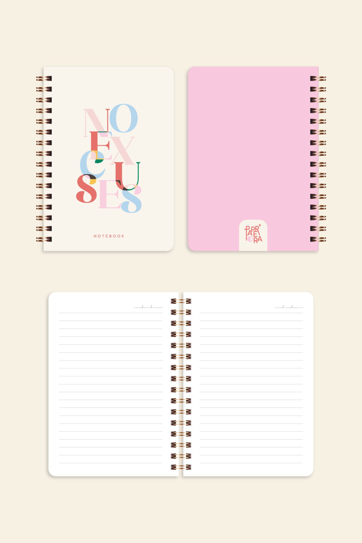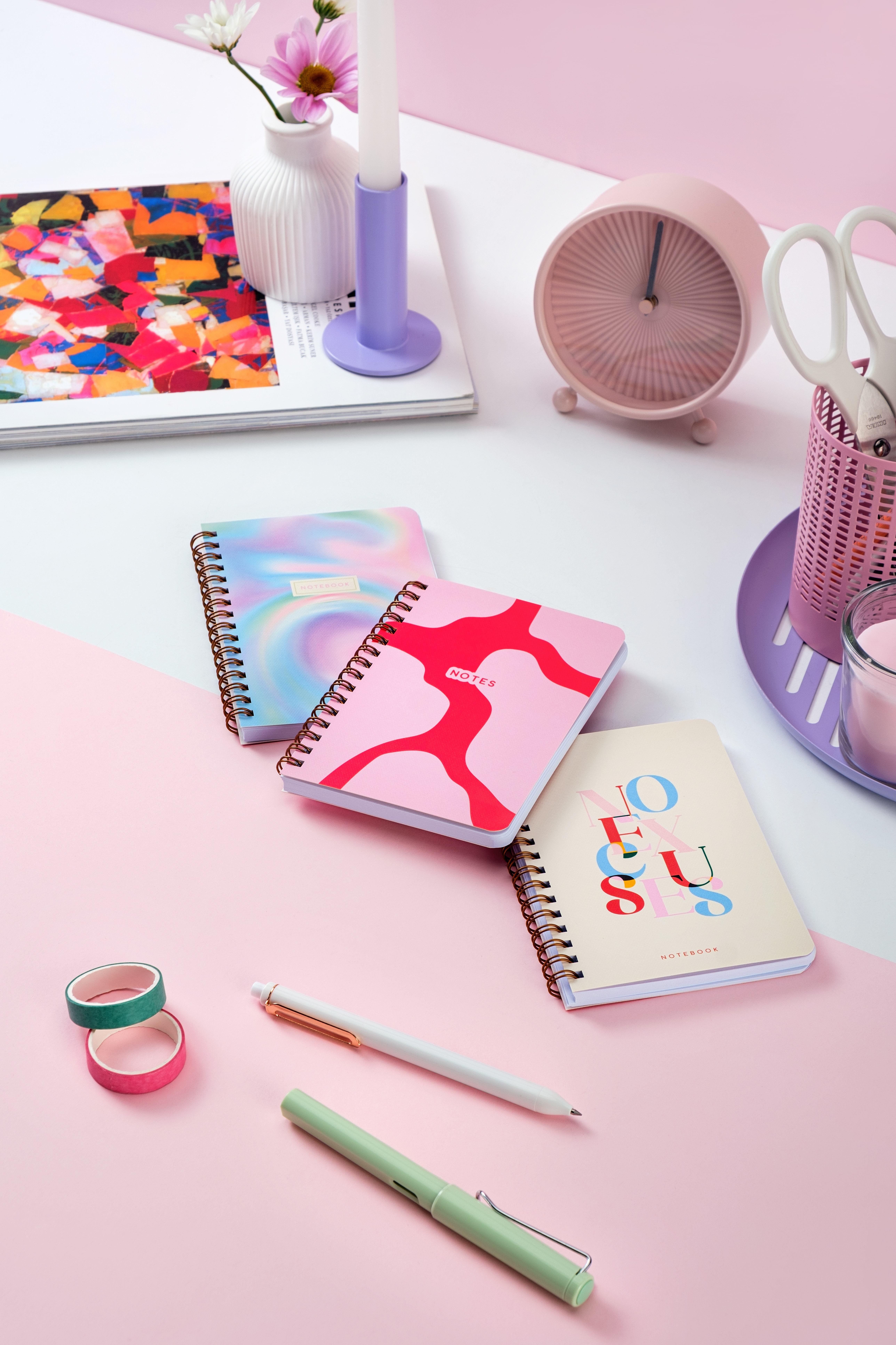 Cep Boy 10x14 cm Spiralli Çizgili Karton Kapak 3'lü Defter Seti No Excuses Soyut Gradient