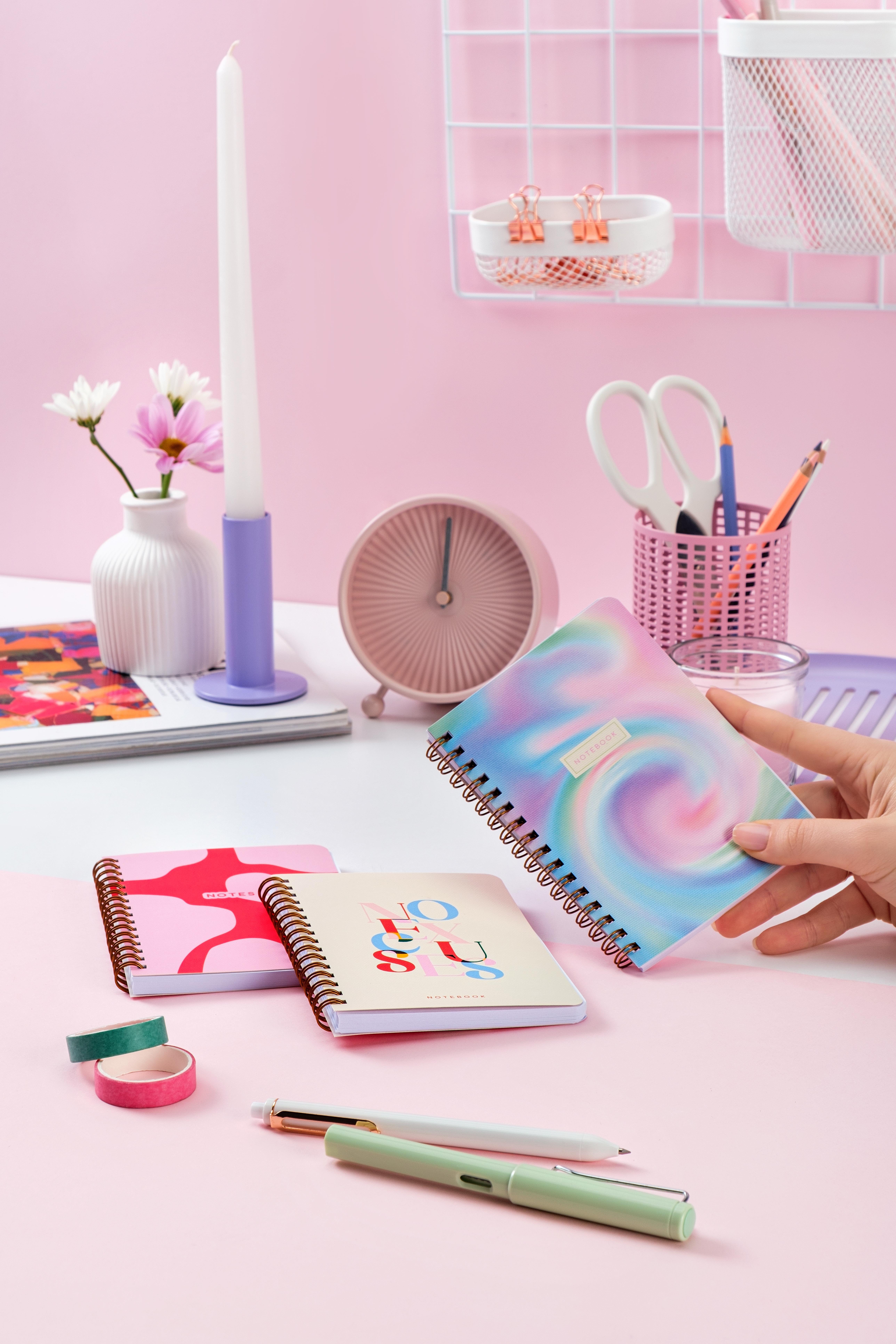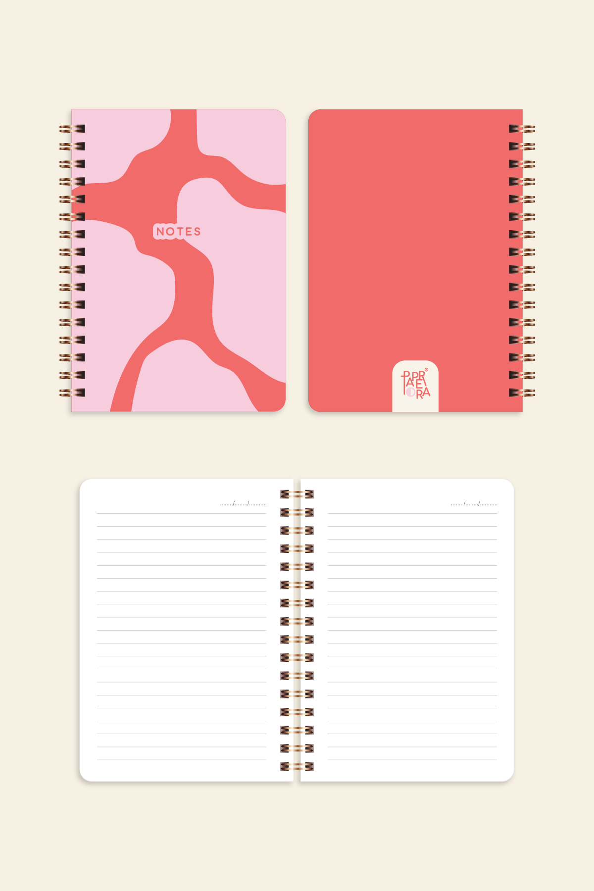 20x28 Spiralli Sert Kapak Lastikli Çizgili Not Defteri Pembe