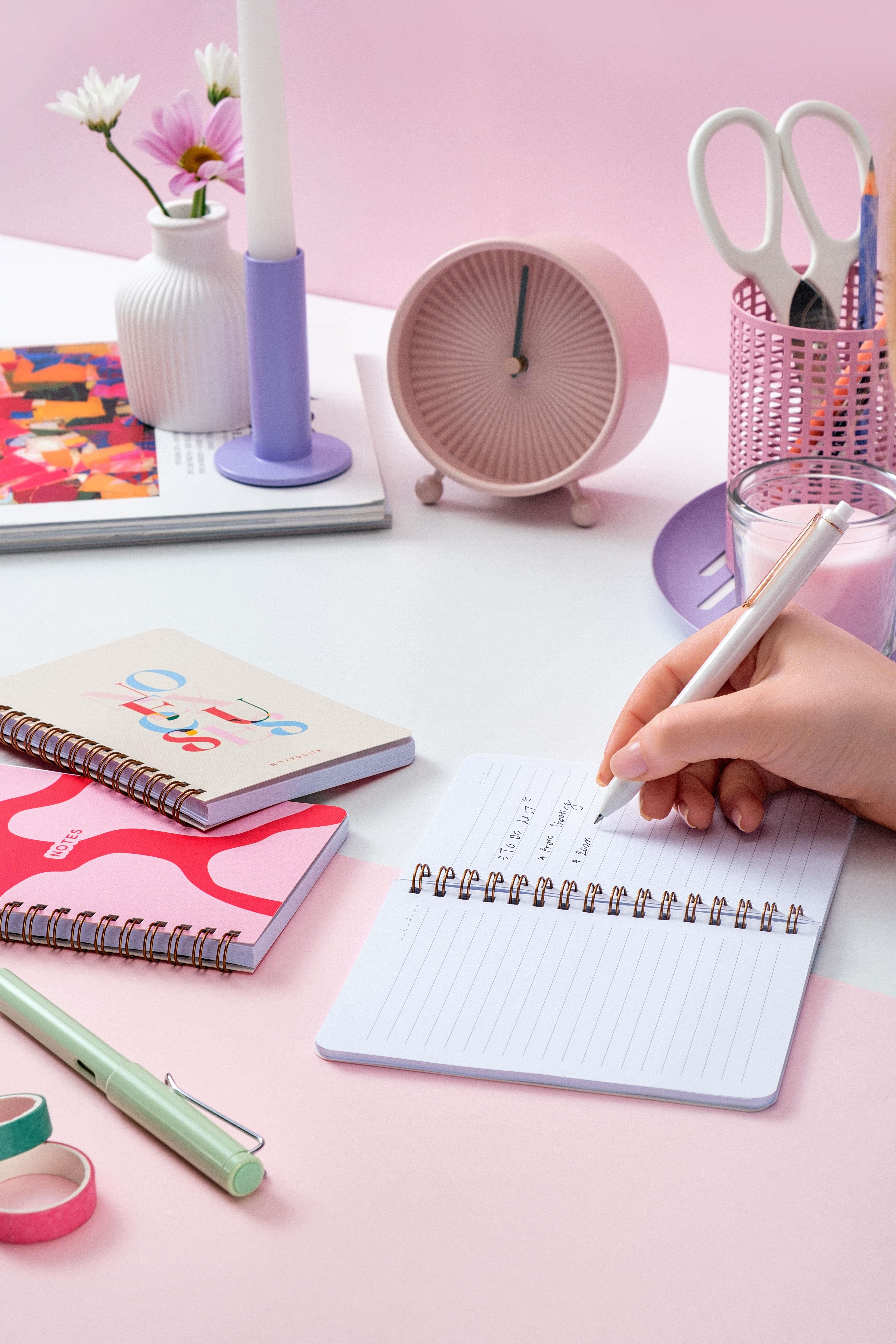 A5 Spiralli Sert Kapak Keten Çizgili Tarihsiz Not Defteri Şeker Pembe